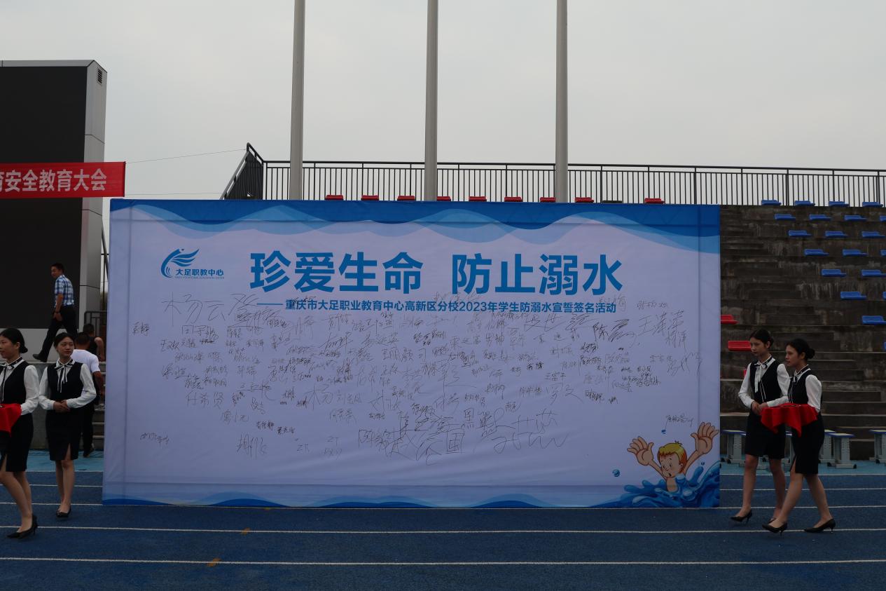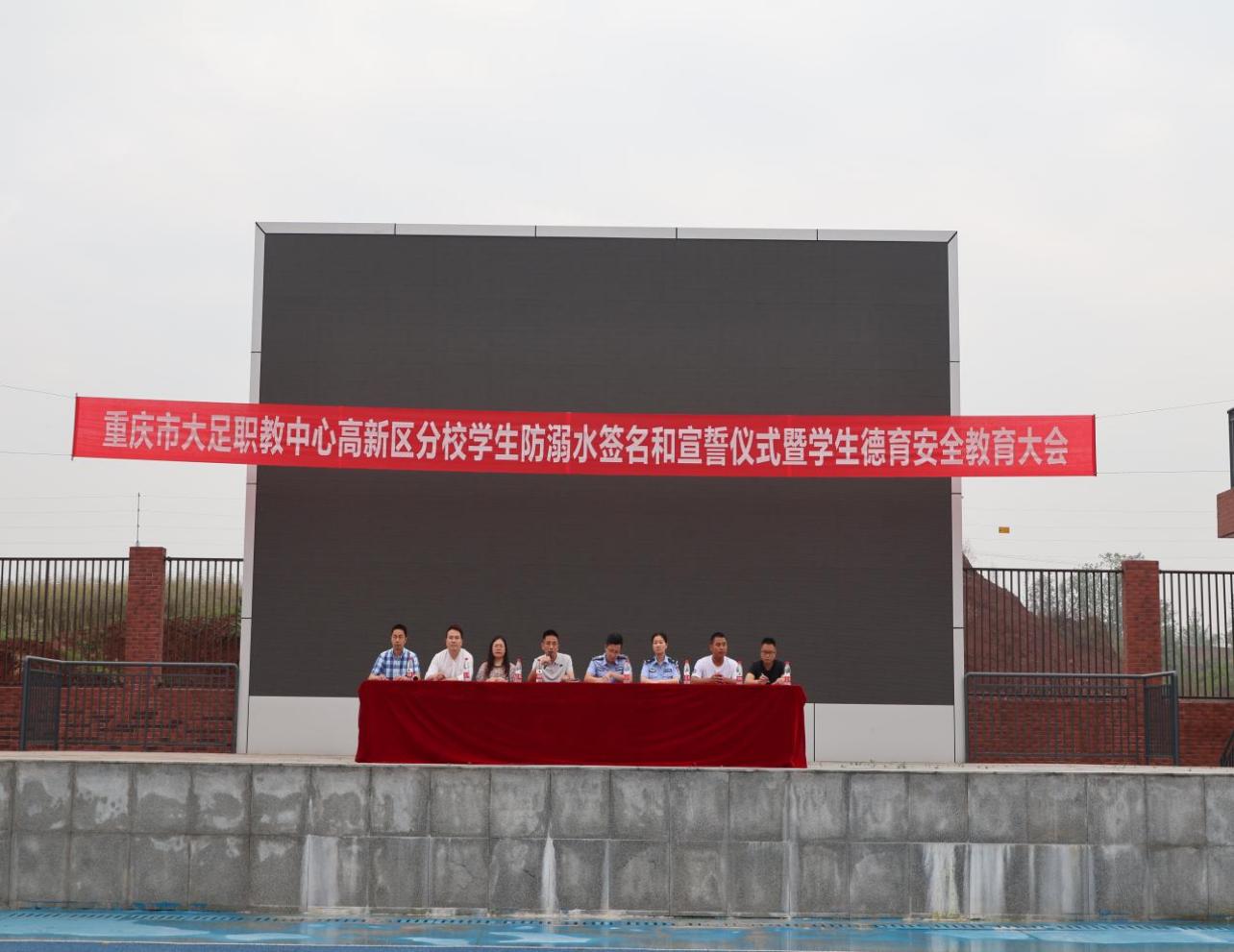 4月21日上午8点30分,重庆市大足职业教育中心高新区分校为进一步落实4月16日《大足区教育系统安全稳定工作紧急视频会议》精神,强化广大师生的安全意识,预防和杜绝溺水事件发生,积极开展“防溺水”宣传教育活动,有效提升师生的安全防范意识,组织师生在运动场召开防溺水签名、宣誓仪式暨德育安全教育大会。
