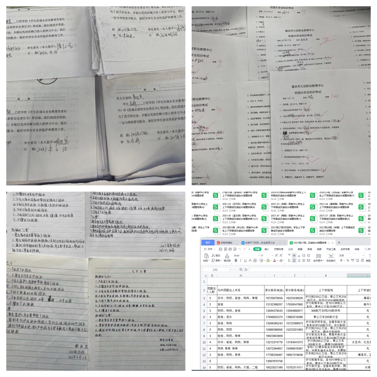 发放《防溺水安全教育告家长书》,签订《防溺水家校安全责任书》,组织防溺水安全知识考试,组织防溺水“七不三要”背诵和抄写,每周学生离校和返校时提醒短信及微信接龙等工作的开展,提醒家长务必增强安全意识和监护意识,切实承担起监管责任,加强对孩子的教育和管理,特别是放学后、双休日、节假日、请假期间学生的管理,经常进行预防溺水等安全教育提醒,给孩子传授相关知识和技能,不断加强孩子安全意识和自我保护意识,提高孩子们的避险防灾和自救能力,严防意外事故的发生。