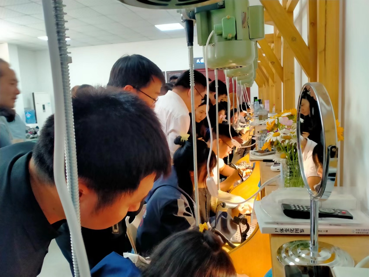 在作品展厅,学员们被一件件精美的石雕艺术品深深吸引,不停发出由衷的赞叹,纷纷拿出手机拍照留念。参观的同时,不少学员仔细询问作品的材质、制作工艺及市场价值等情况。在石雕、玉雕生产车间,基地负责人向学员们详细介绍了机器石雕生产的特点、流程、优势,并就学员们特别感兴趣的玉器品质鉴别做了特别介绍。在泥塑创作室,在职教中心石雕石刻专业市级骨干教师王生兵老师的带领下,学员们体验了泥塑“佛手”制作。经过一个多小时制作,大家都做出了令自己满意的作品,收获了满满的成就感。不少学员还把创作的作品带回家,表示要把这次难得的实践体验珍藏起来。