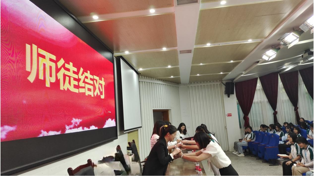 师徒结对。快速提高学前教育专业教师的业务素质和教育创新能力,充分发挥校企合作育人机制的引领、辐射、示范作用,海棠幼儿园特别为职教中心青年教师代表罗和苗,学生代表李家玉、陆锌指定了海棠幼儿园党委书记、校长胡晓红、海棠幼儿园一线教师胡晓玲、吴文各自作为她们的导师,3对师徒齐聚学校第一学术报告厅,举行了隆重的师徒结对敬茶拜师仪式