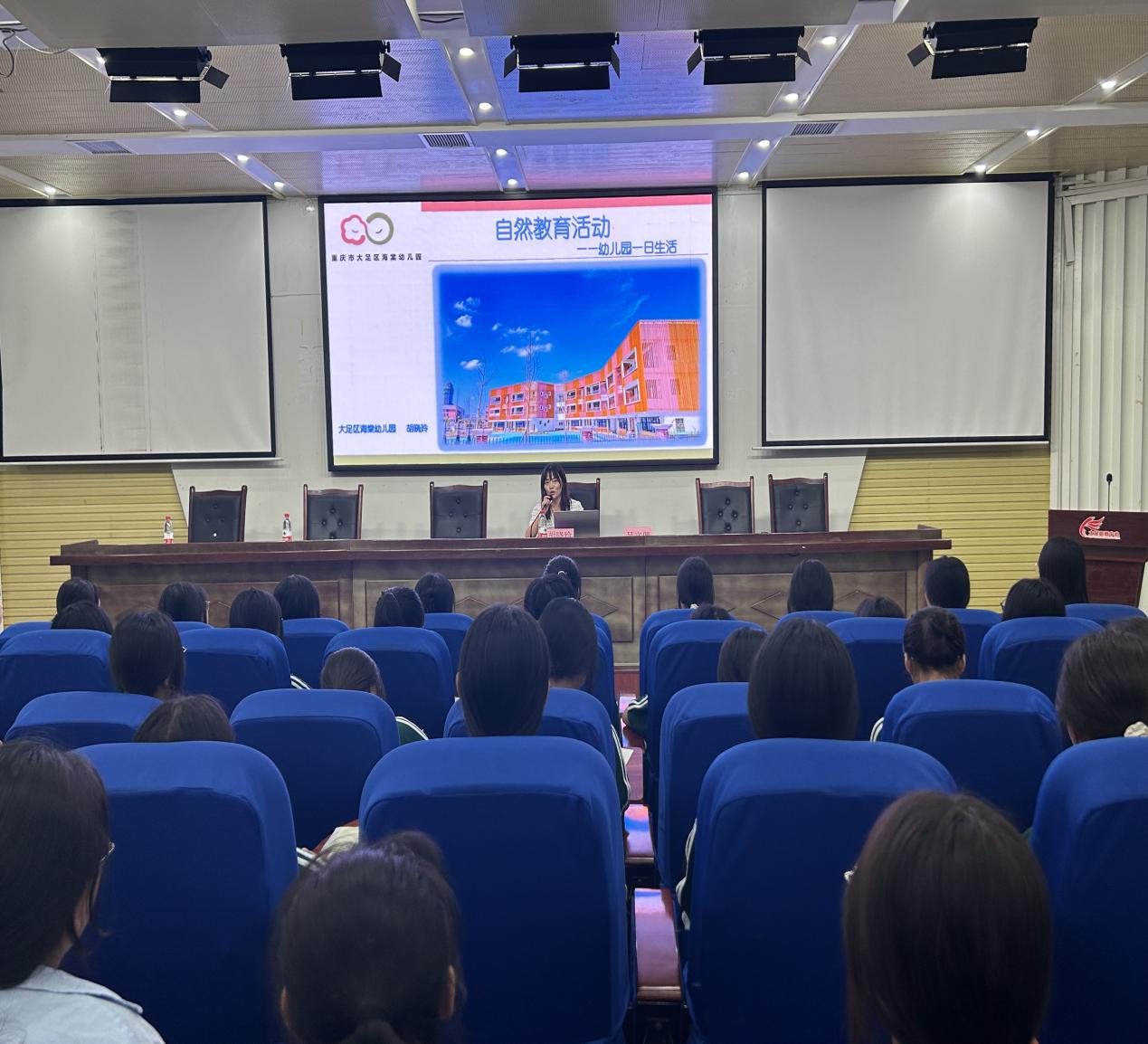 专题讲座。海棠幼儿园一线教师胡晓玲从幼儿一日生活流程、游戏活动的组织与开展等方面为职教中心幼儿保育专业师生带来了精彩的讲座;海棠幼儿园一线教师吴文《做幸福的幼儿教师》为题,分享了作为一名幼儿园教师成长历程提升专业自信、职业自信的经验,做一名幼教人幸福并快乐着的方式方法