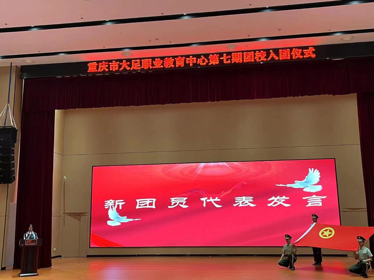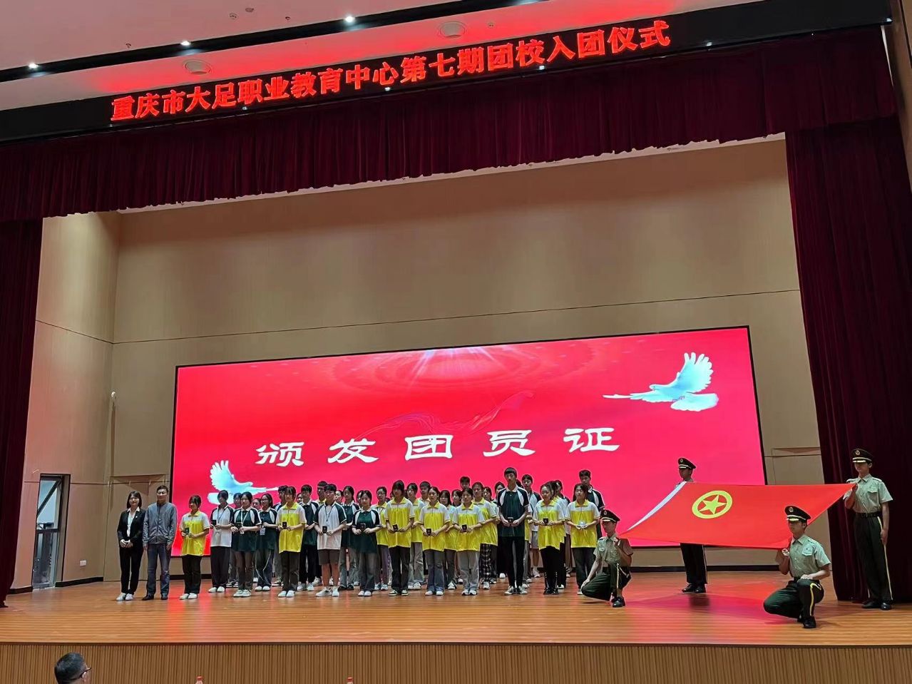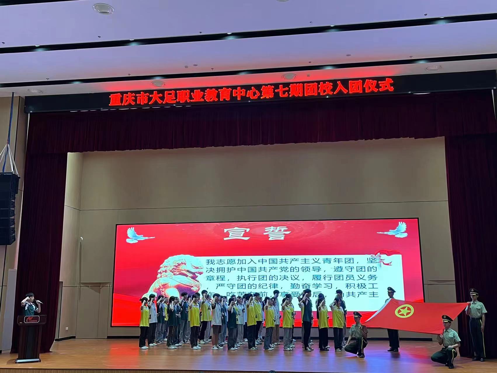为加强学校共青团队伍建设,增强青少年进取意识,进一步加强团员爱国、爱党、爱团教育,2023年6月16日上午10:00,重庆市大足职业教育中心在高新区分校仁智楼综合报告厅隆重举行第七期团校新团员入团仪式。