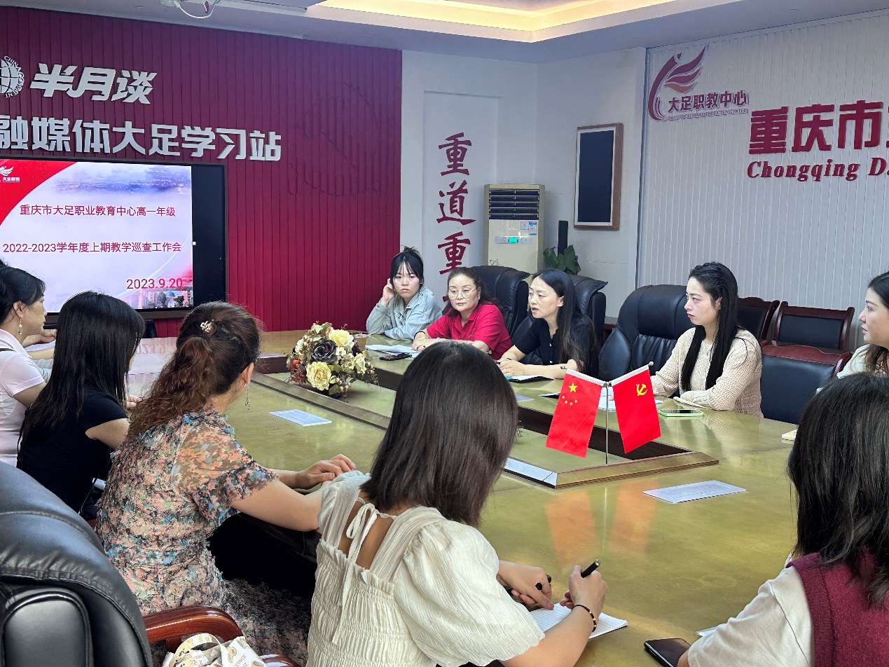 教育教学质量是学校发展的生命线。为推进教育教学工作有序、有效开展,确保教育教学常规的落实,稳步提升课堂教学质量,2023年9月20日上午,重庆市大足职业教育中心在海棠新城校区励志楼会议室组织召开高一年级组教学巡查工作会。会议由高一年级副主任钟仕娟主持,高一年级主任粟廷富、高一年级巡查小组全体成员参会。