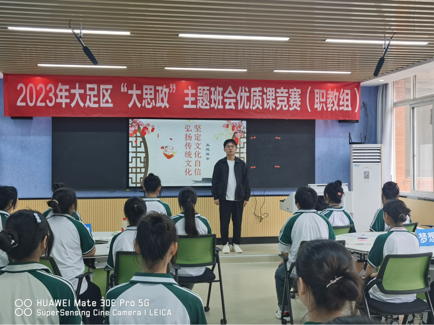 通过评判,黄俊豪老师、曹梦婷老师脱颖而出,分别获2023年大足区“大思政”主题班会优质课(中职组)一等奖、二等奖。黄俊豪老师将代表大足区参加市级“大思政”主题班会比赛。