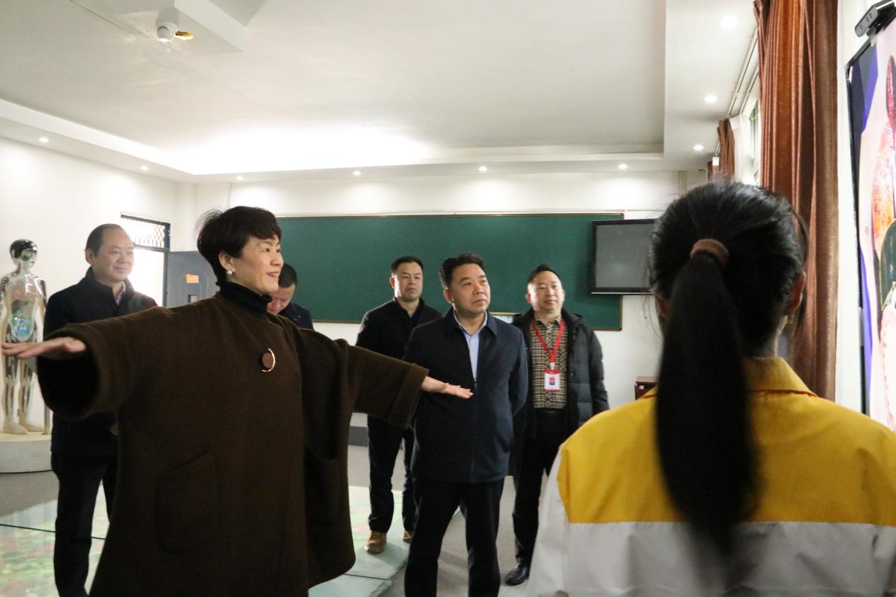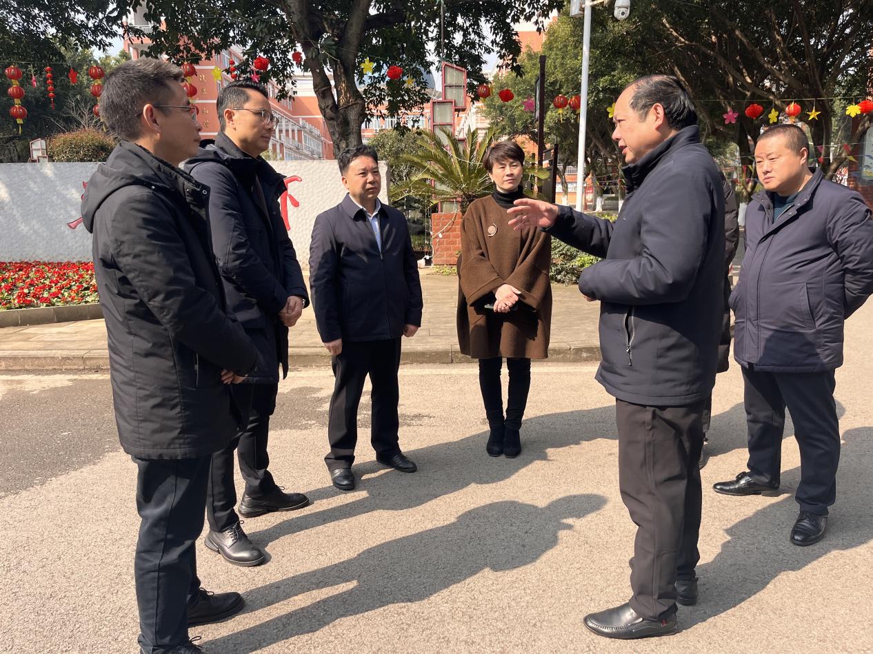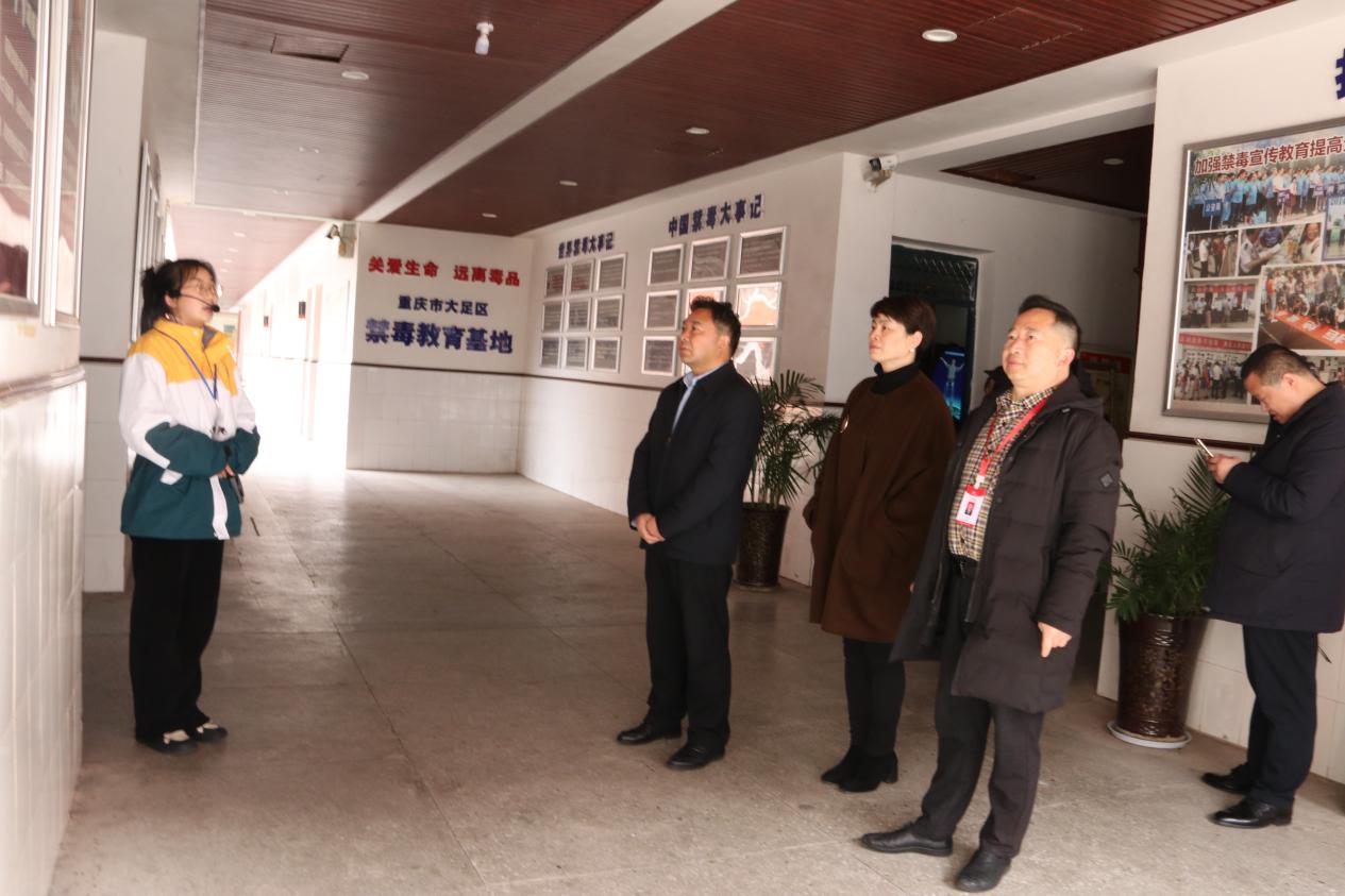 2024年2月29日上午,重庆市大足区关工委常务副主任陈仲伦、区关工委副主任施宏文、区社会管理服务中心主任赵洪岗、区教委副主任易兰一行莅临重庆市大足职业教育中心,在职教中心党委书记杨朝均、校长封吉泉等校领导陪同下,调研指导禁毒教育工作。