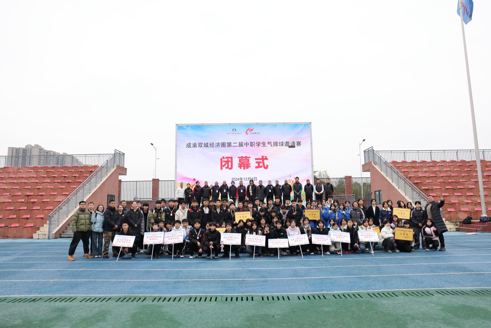 2024年12月8日,随着最后一场比赛的哨声落下,由重庆市中等职业学校体育协会与成都市排球运动协会联合主办,重庆市大足职业教育中心承办的成渝双城经济圈第二届中职学生气排球邀请赛在重庆市大足职业教育中心高新校区)体育馆圆满落下帷幕。此次赛事不仅促进了成渝两地中职学生体育文化的交流与合作,还进一步推进了成渝地区双城经济圈各中职学校间的友谊与发展