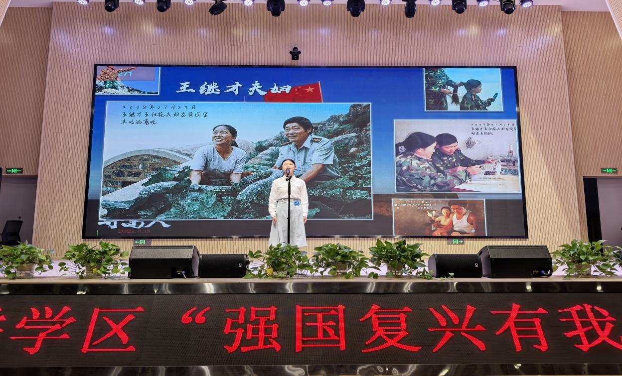 胡佳妤同学演讲的每一句话语都饱含对祖国的深厚情谊,用稚嫩却充满力量的声音讲述着感人至深的爱国故事,将故事中的爱国情感展现得淋漓尽致。