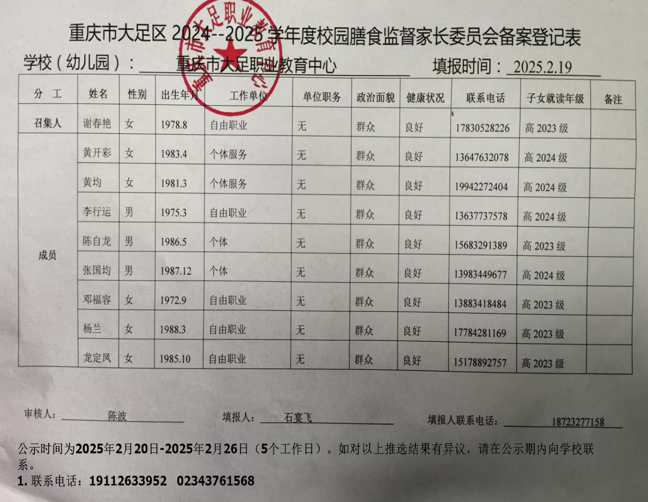 重庆市大足职业教育中心成立膳食监督家长委员会