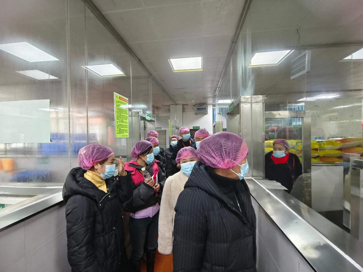 参观走访校园后,家长委员会成员们在学校领导和食堂负责人的带领下,实地参观了学校食堂内厨。从食材的储存仓库到清洗加工区域,从烹饪操作间到餐具消毒间,每一个环节都展现在家长们的眼前。