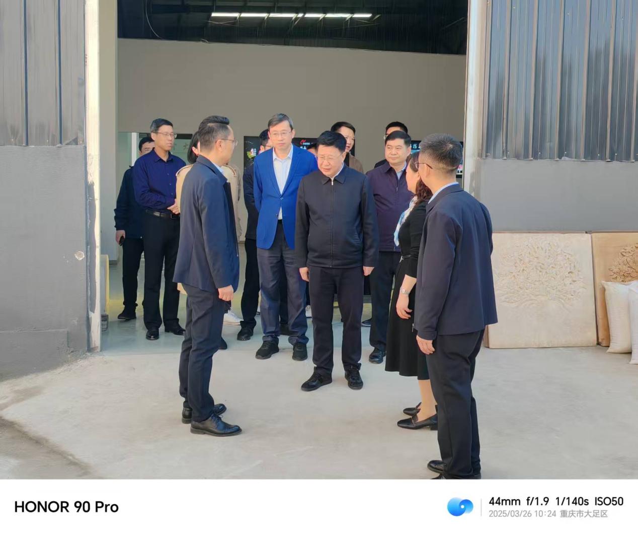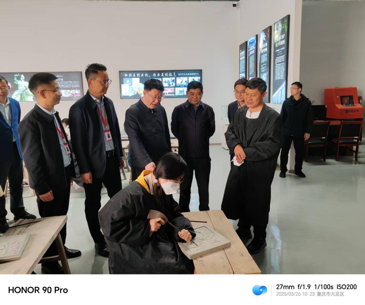 3月26日,市人力社保局党组书记、局长谢礼国在区委书记徐晓勇的陪同下,来足调研劳务品牌建设、产业技能人才培育、基层就业创业服务等工作。在大足石刻文创园谢局长一行先后走访了农民工返乡创业园重庆千足珍珠有限公司大足美学·国潮珠宝产业园后,专门走进大足石刻文创产业公共实训基地实地调研