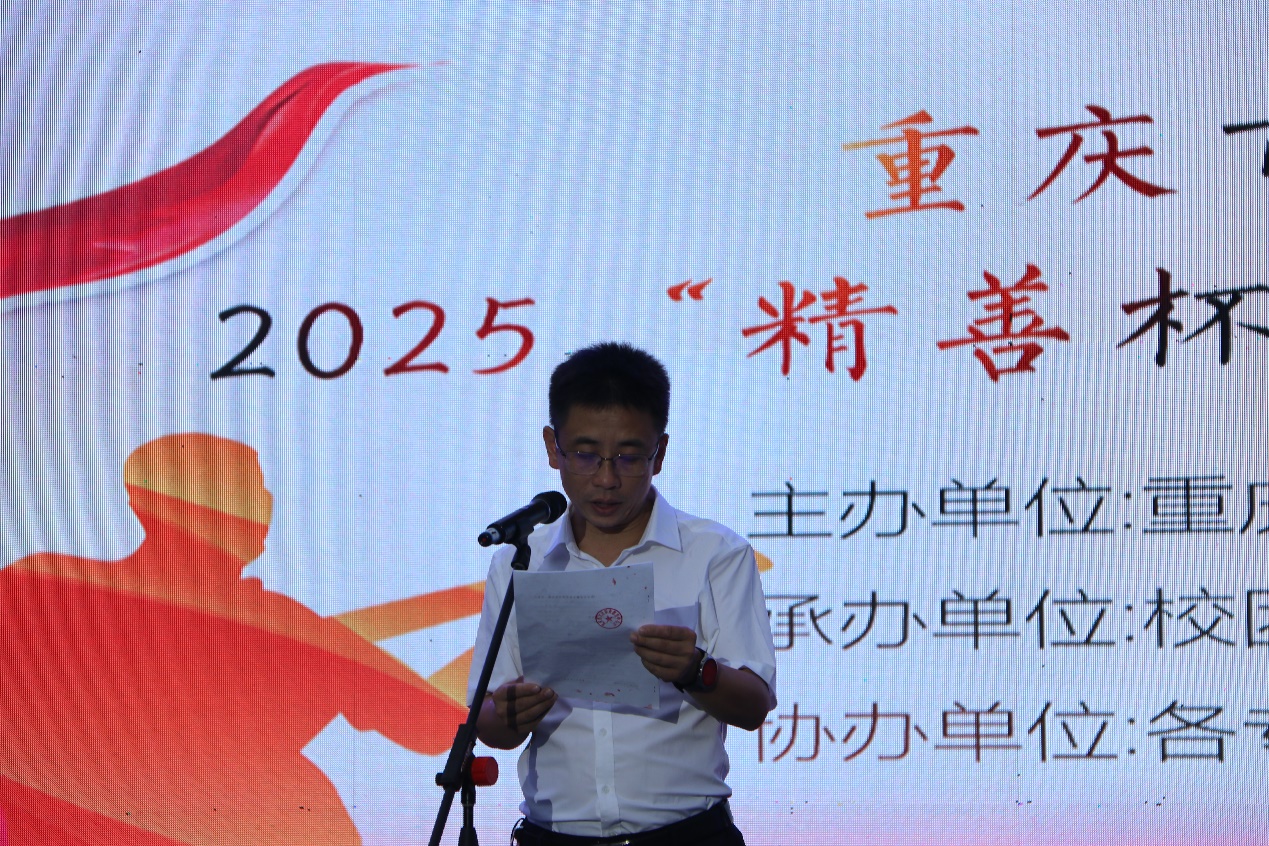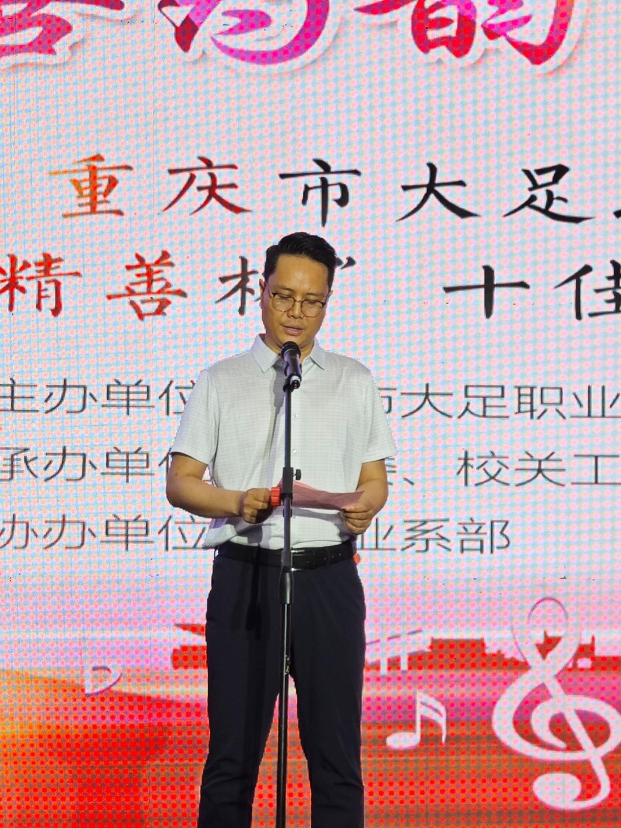职教中心党委书记杨朝均登台开幕致辞,希望同学们在音乐舞台上用歌声诠释“精善”内涵、绽放独属于自己的青春光芒,展现出大足职教人“精于技、善于心、美于行”的卓越风采。
