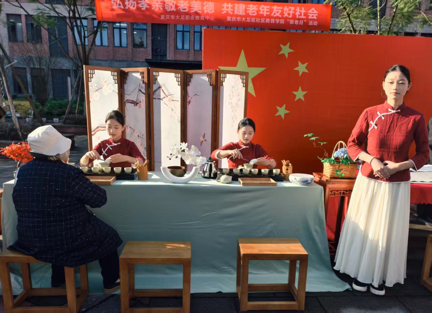 启动仪式在极具大足特色的文艺表演中拉开帷幕。区教委分管领导在致辞中指出,活动将深度结合大足非遗文化与老年教育资源,通过系列特色活动践行孝亲敬老传统美德,推进老年友好型社会建设。随着区教委主要领导宣布活动启动,六大特色服务专区同步开放,吸引参与者踊跃体验。