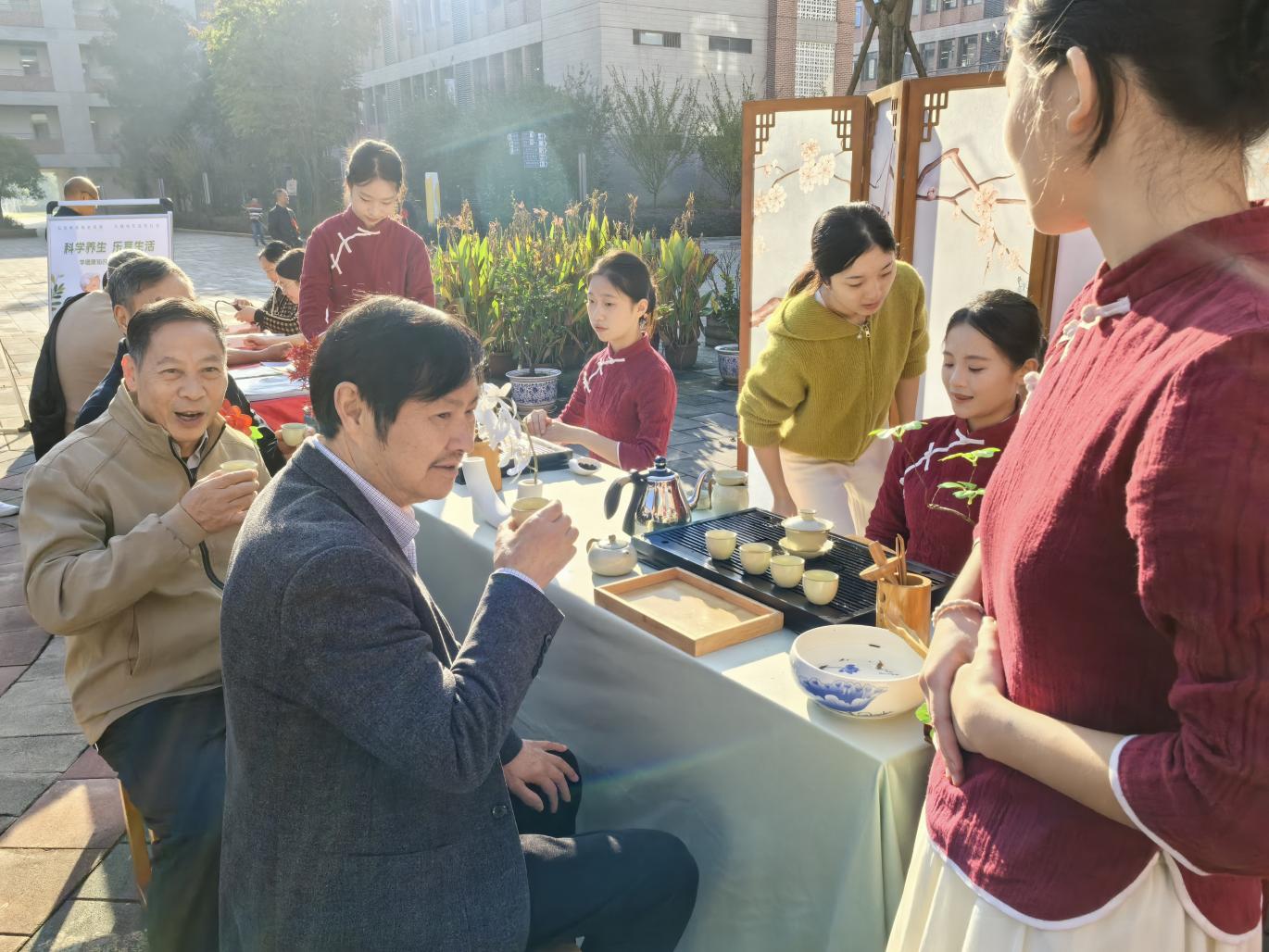 健康与权益保障服务备受青睐保健医生提供慢性病咨询,医护人员免费测血压、建健康档案,《老年健康手册》与秋季养生知识同步送达,健康问答小游戏让学习更添趣味;法律工作者现场解读养老保险、遗产继承等问题,通过诈骗案例展板与防骗达人竞答,提升老年人防范意识与维权能力。此外,爱心义剪区的专业理发师细心服务,茶艺体验区的茶韵文化讲解与实操教学,更让老人们感受到细致关怀。