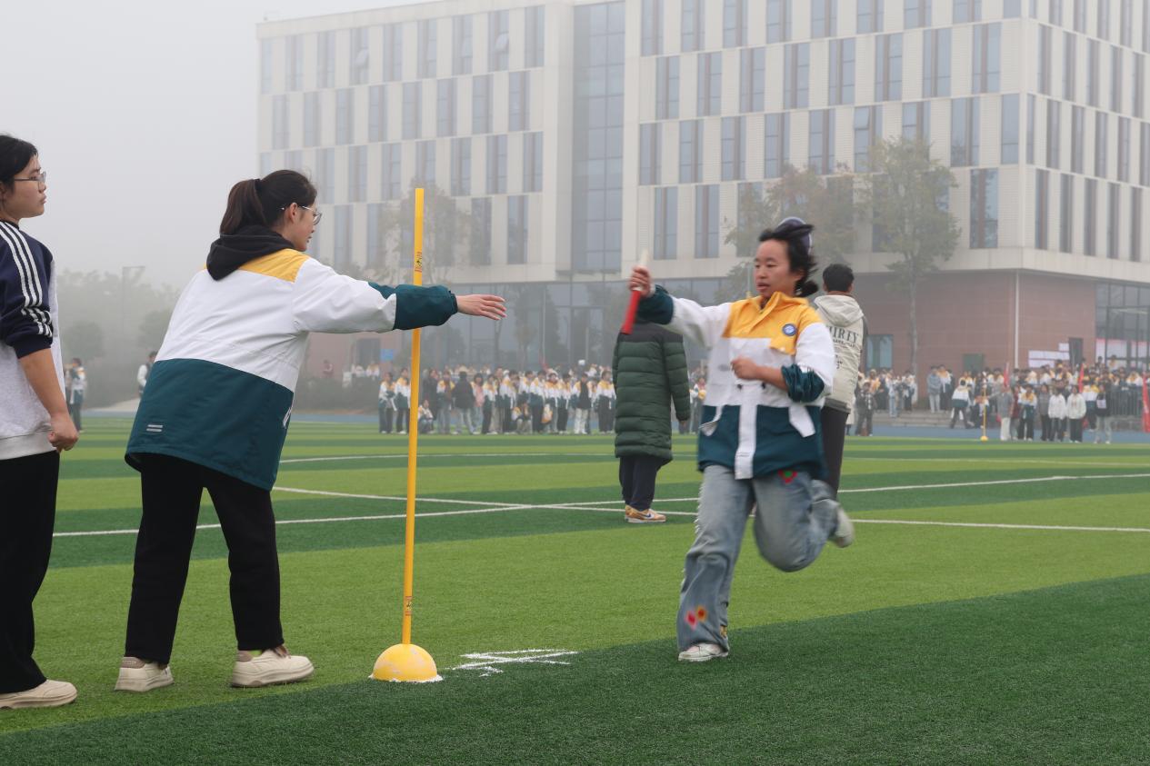 在田径项目中,运动员们以“超越自我、挑战极限”的信念诠释竞技精神。男子100米决赛中,两个校区的学生均打破校纪录,引发全场欢呼;跳高赛场,海棠校区2023级23班选手张华亿、2023级25班选手黄依分别摘得男、女桂冠,其轻盈跃动的身姿成为赛场焦点,并打破尘封多年的校记录。此外,4×100米接力赛、50米迎面接力赛中,各班默契配合,展现了团队协作的强大力量。