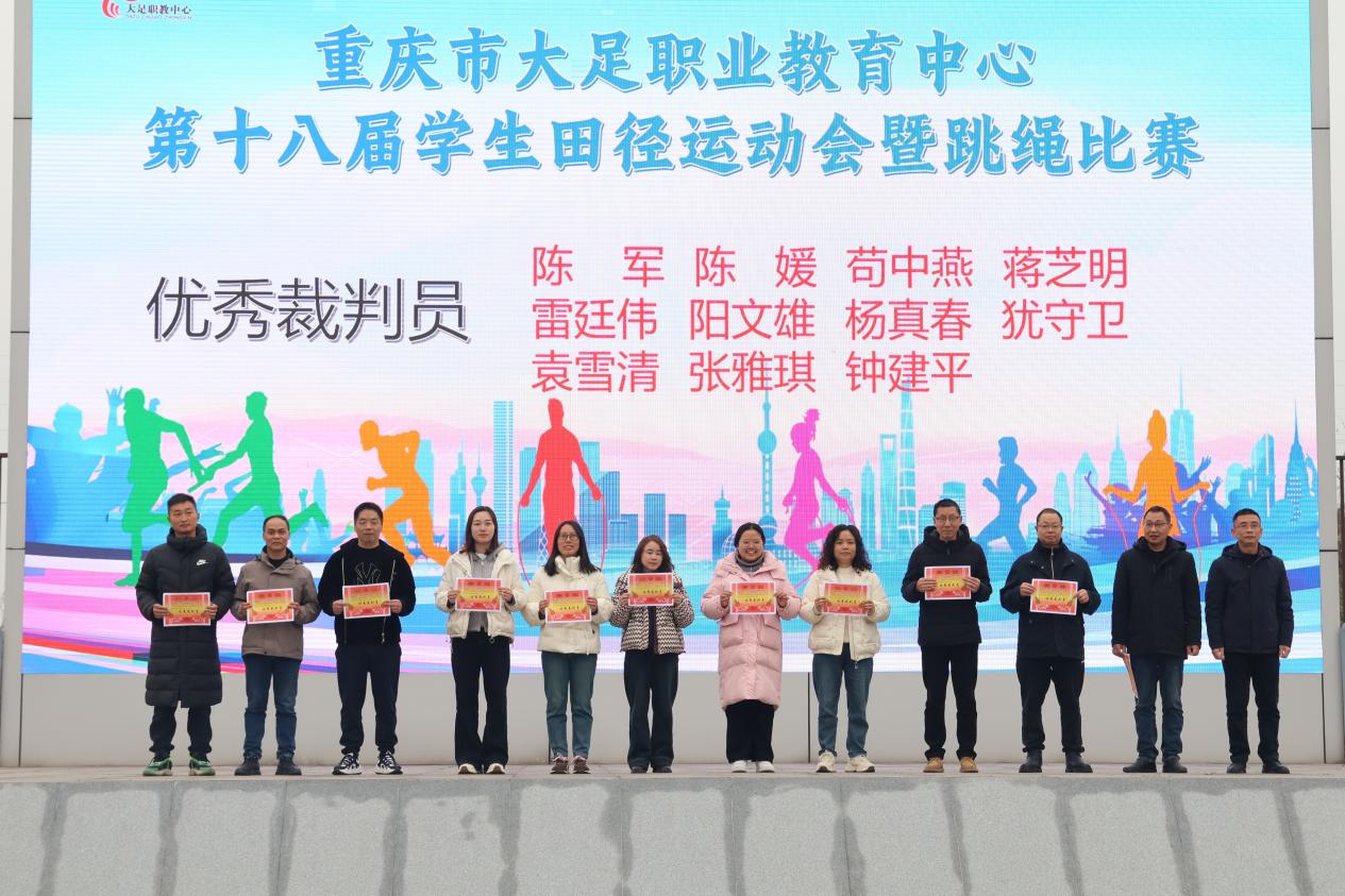 2025年12月9日至11日,重庆市大足职业教育中心第十八届学生田径运动会暨跳绳比赛在校园田径场火热举行。本次赛事以“青春赛道展风采,职教梦想正启航”为主题,吸引了全校2000余名师生参与,涵盖田径、跳绳两大类共计32个竞赛项目。经过两天半的激烈角逐,赛事不仅刷新了多项校纪录,更以拼搏的体育精神与创新的赛事组织,为校园体育文化注入全新活力。