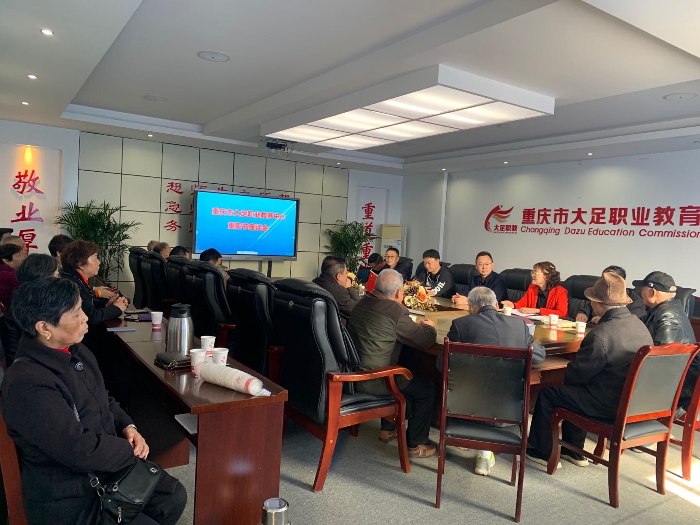 金秋时节,丹桂飘香。2020年10月23日,职教中心在学校励志楼二楼会议室举行了退休教师党支部《中国制度面对面》学习研讨会和“九九重阳节、浓浓敬老情”座谈会。学校领导及退休教职工20多人参加了活动。