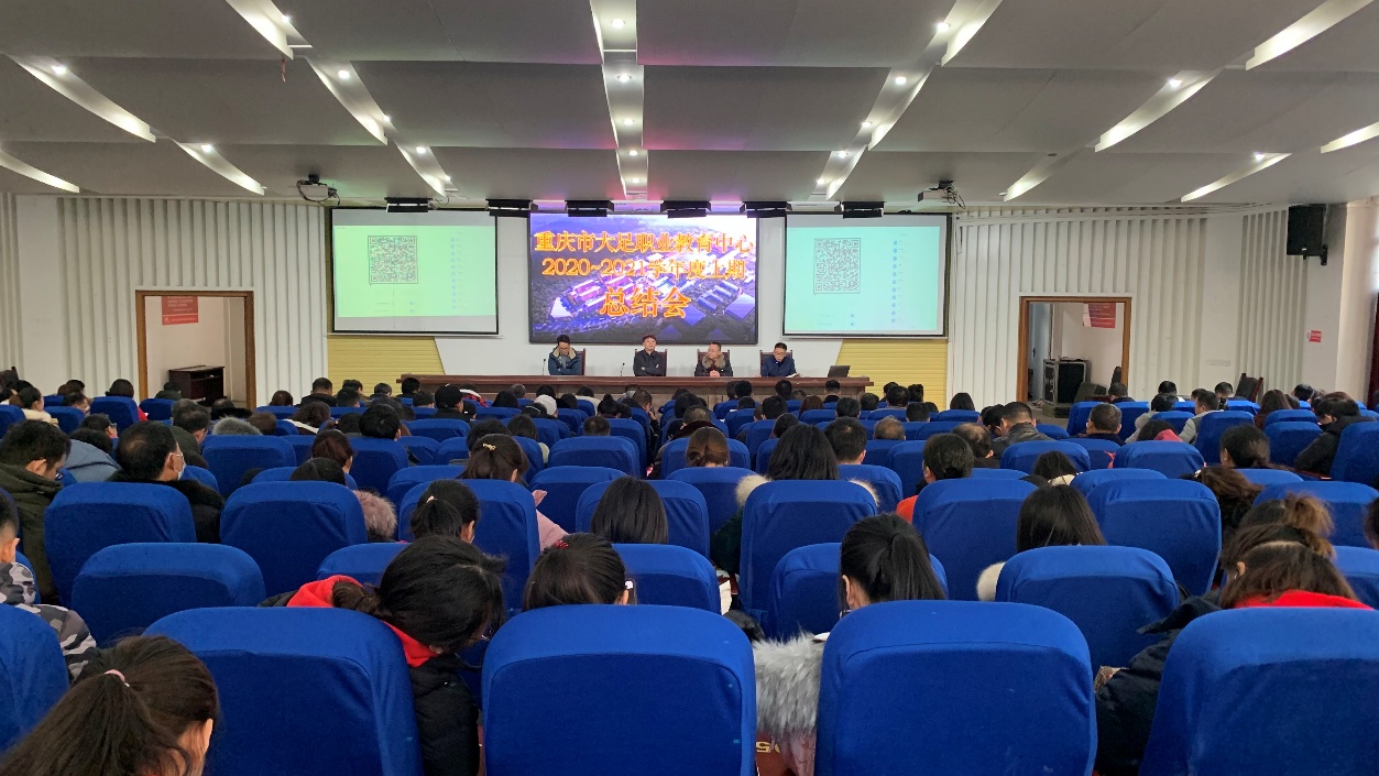 2021年1月28日,职教中心在第一学术报厅召开2020-2021学年度上期工作总结会。会议由学校党委书记、副校长覃兵主持,学校班子成员面向全体教职工做工作报告。