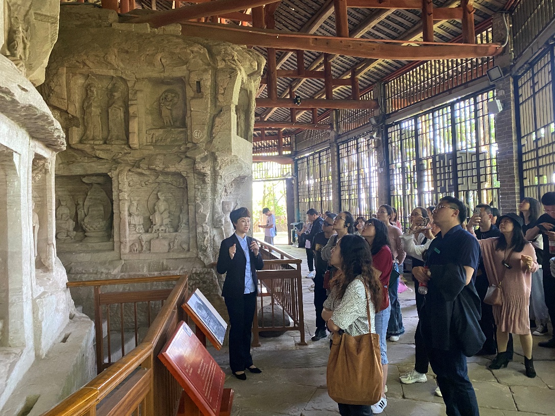 采风活动严格依据大赛组委会秘书组印发《关于“魅力职教 石刻绽放”大足石刻文旅产品创新设计大赛采风活动的通知》文件精神有条不紊组织开展。每天组织采风团队上午游北山石刻,下午观宝顶山石刻,一路听导游讲解、一路啧啧称奇,文化激荡思想,艺术撞击心灵,石刻魅力在平静游览中展示,创作灵感在自由采风里激发。大赛组委会静待5月7日最后一批采风团队的到来。