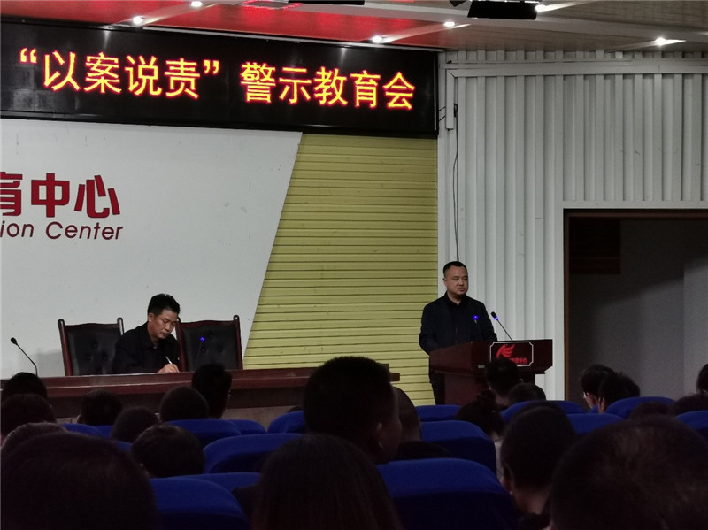2019年10月20日中,职教中心党委在学术报告厅召开“正风肃纪、以案四说”警示教育教职工大会。会议由罗在兵同志主持。