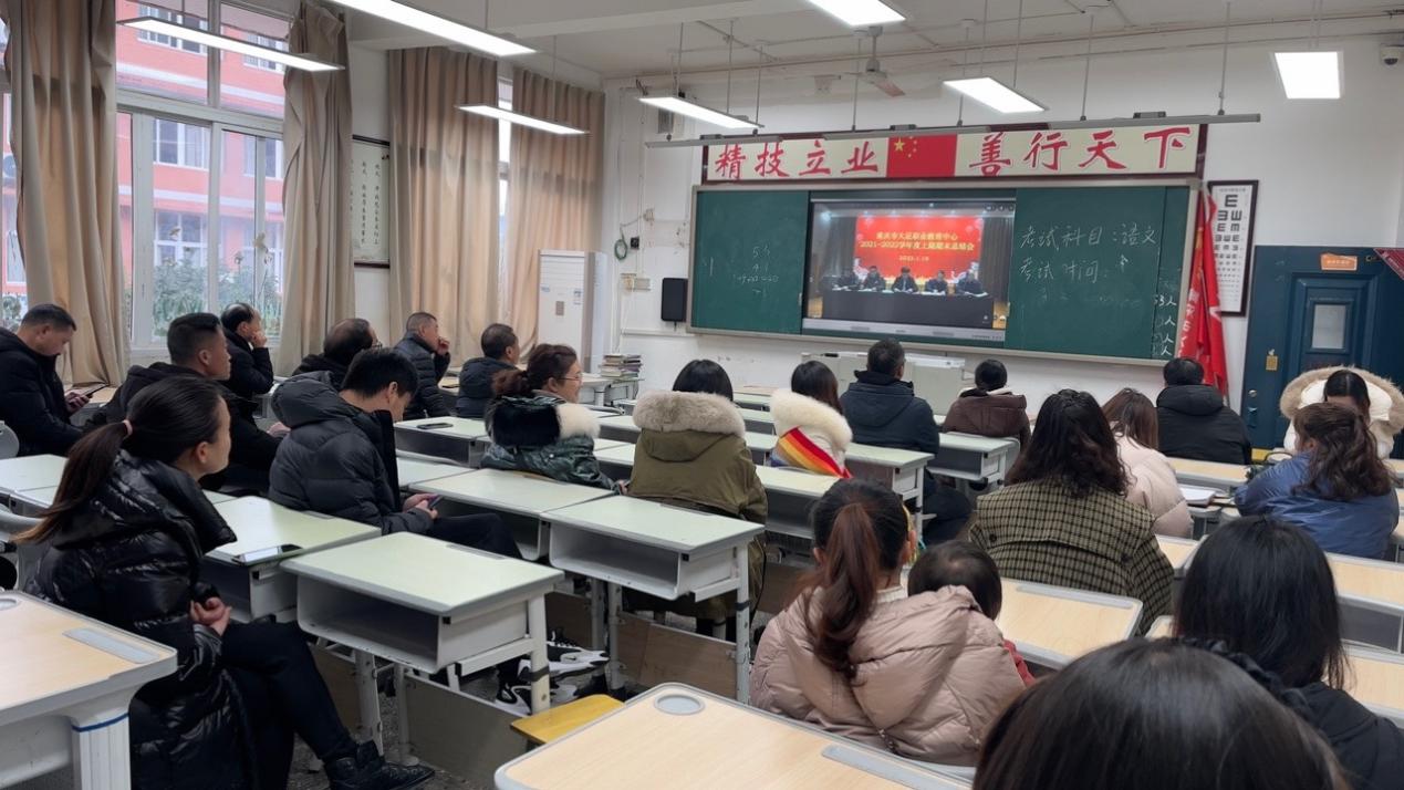 2022年1月19日,职教中心2021—2022学年上期工作总结会在第二学术报厅举行。全体行政人员主会场参会,各专业部组织全体教师在各自的分会场观看现场直播。