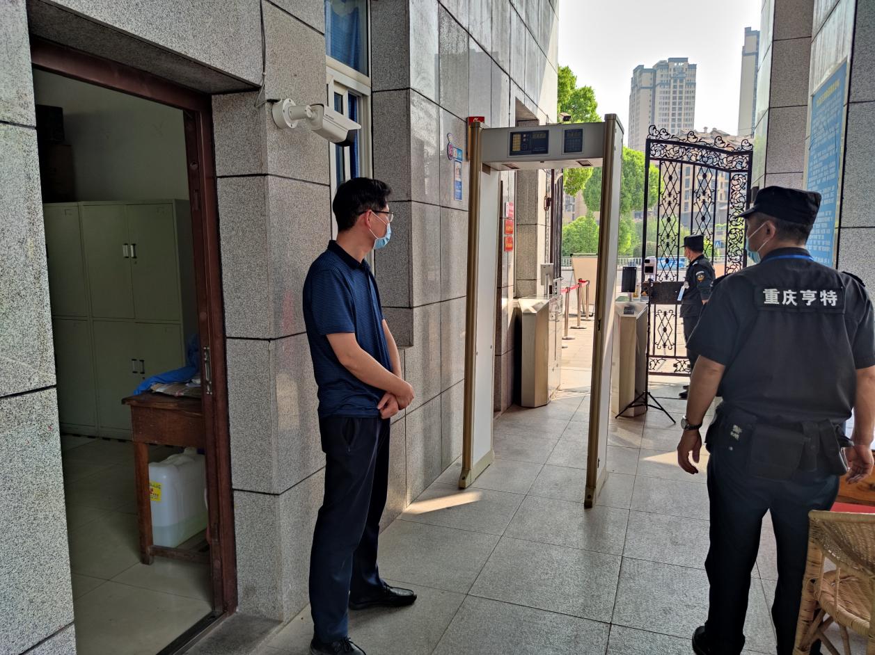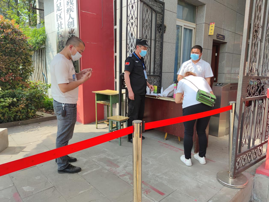 3月11日晚上,学校安稳办要求全体保安切实做好门岗防疫工作。即日起起关闭校大门闸门,一切外来人员及车辆一律不得入校,如因特殊原因需入校人员及车辆需经得校领导同意批准,按照防疫工作要求做好查验及登记。周末学生返校时,增调了保安到校门口通道严格核验身份、检测体温、查看健康码和行程码。