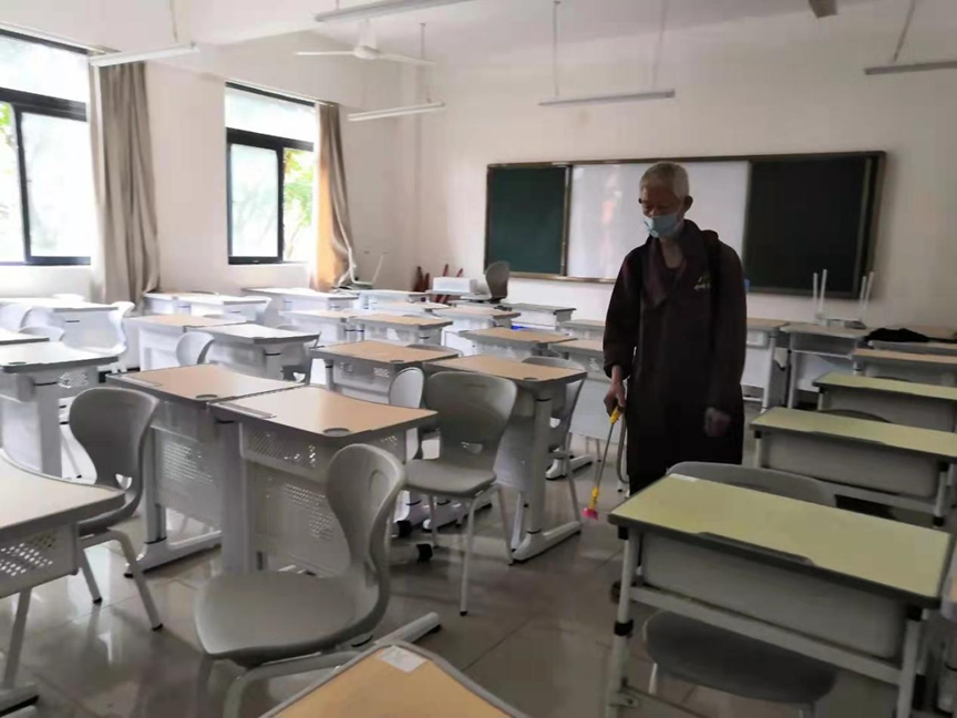 二是环境消杀。3月12日下午,总务处联系专业消毒人员对学校教室、寝室、会议室、图书室、食堂等区域进行消杀,并按要求做好校园日常清洁、消毒,建立有关卫生及防控制度,做好“三室一区”的通风、消毒和卫生管理工作。