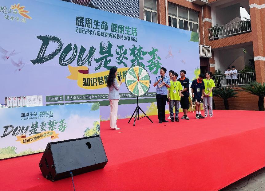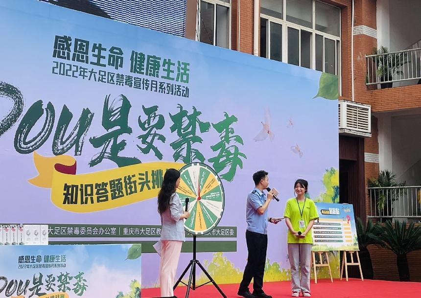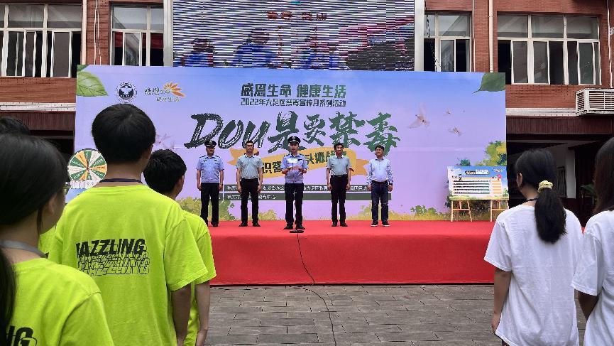 5月31日下午,重庆市大足区公安局、重庆市大足区教育委员会、共青团重庆市大足区委主办、重庆市大足职业教育中心协办的“感恩生命、健康生活”2022年大足区全民禁毒宣传月活动启动仪式在职教中心两栋教学楼之间广场顺利举行。