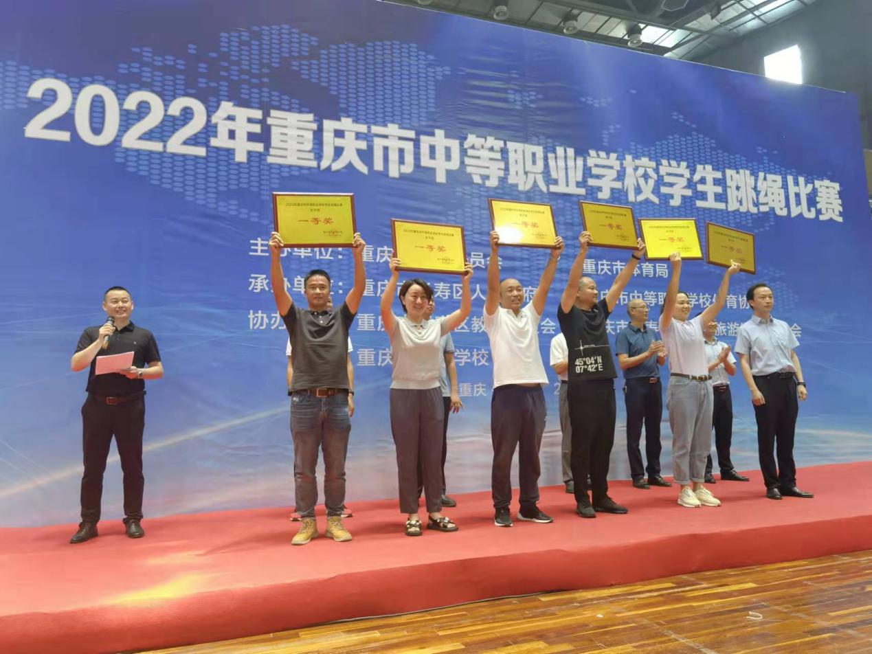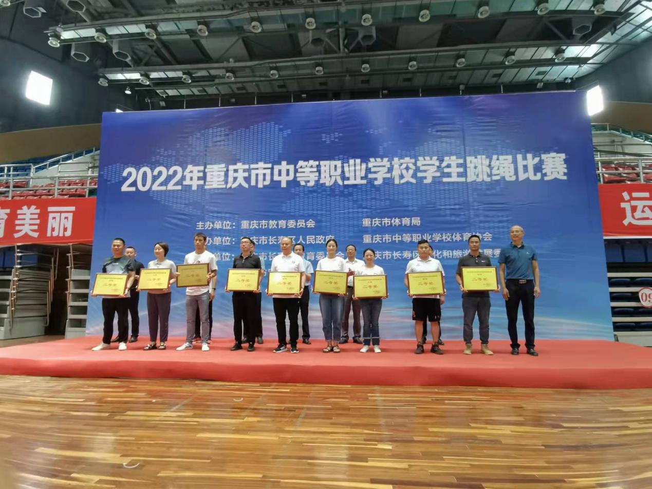 2022年6月17—19日,2022年重庆市中等职业学校学生跳绳比赛在长寿区体育中心隆重举行。本次比赛规格高,由重庆市教委、重庆市体育局主办,重庆市长寿区人民政府、重庆市中职体协承办,重庆市长寿区教委、重庆市长寿区文旅委、重庆市医药学校协办。本次运动会共有四十多支队伍、六百余名学生参赛,全体参赛运动员在历时两天的比赛中参加了五个大项十个小项的角逐。