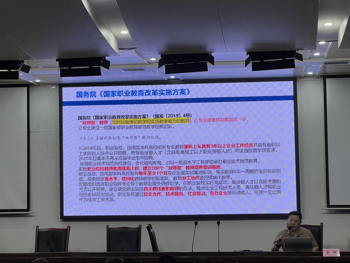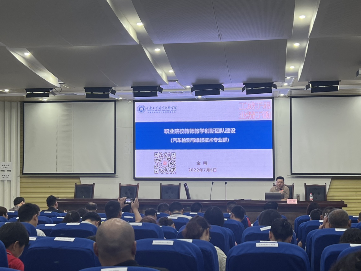 上午,重庆工业职业技术学院车辆工程学院副院长、教育部高等学校青年骨干教师上海交通大学访问学者金明院长的讲座主题是《职业院校教师教学创新团队建设》,讲座主要围绕当前的职业教育相关文件、职业教育教师外部环境、教师教学创新团队创建等方面分享宝贵经验,建议学校应顺势而上积极作为组建高水平教师教学创新团队。