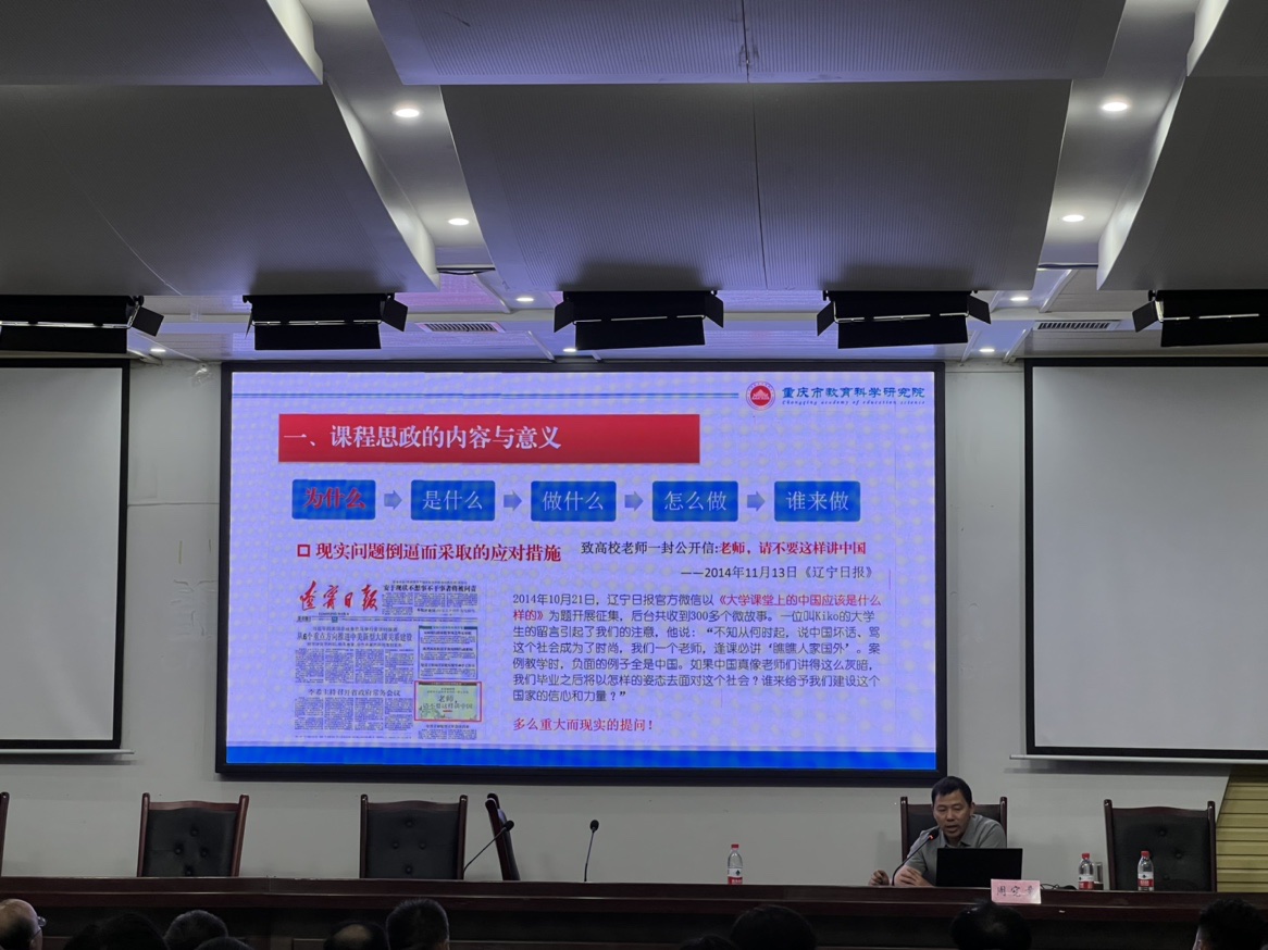 下午,重庆市教育科学研究院职成教所计算机专业专职教研员、三峡之光访问学者、重庆市电子与信息类职业教育行业指导委员会委员、全国中高职计算机类技能大赛专家组成员周宪章老师以《职业教育课程思政的内涵与方法》为题,从为什么要实施课程思政、课程思政是什么做什么怎么做谁来做等问题进行了阐述,周老师用富有哲理的语言、发人深思的故事、鲜活生动的案例深入浅出的为大家讲述了职业教育课程思政的重要性。