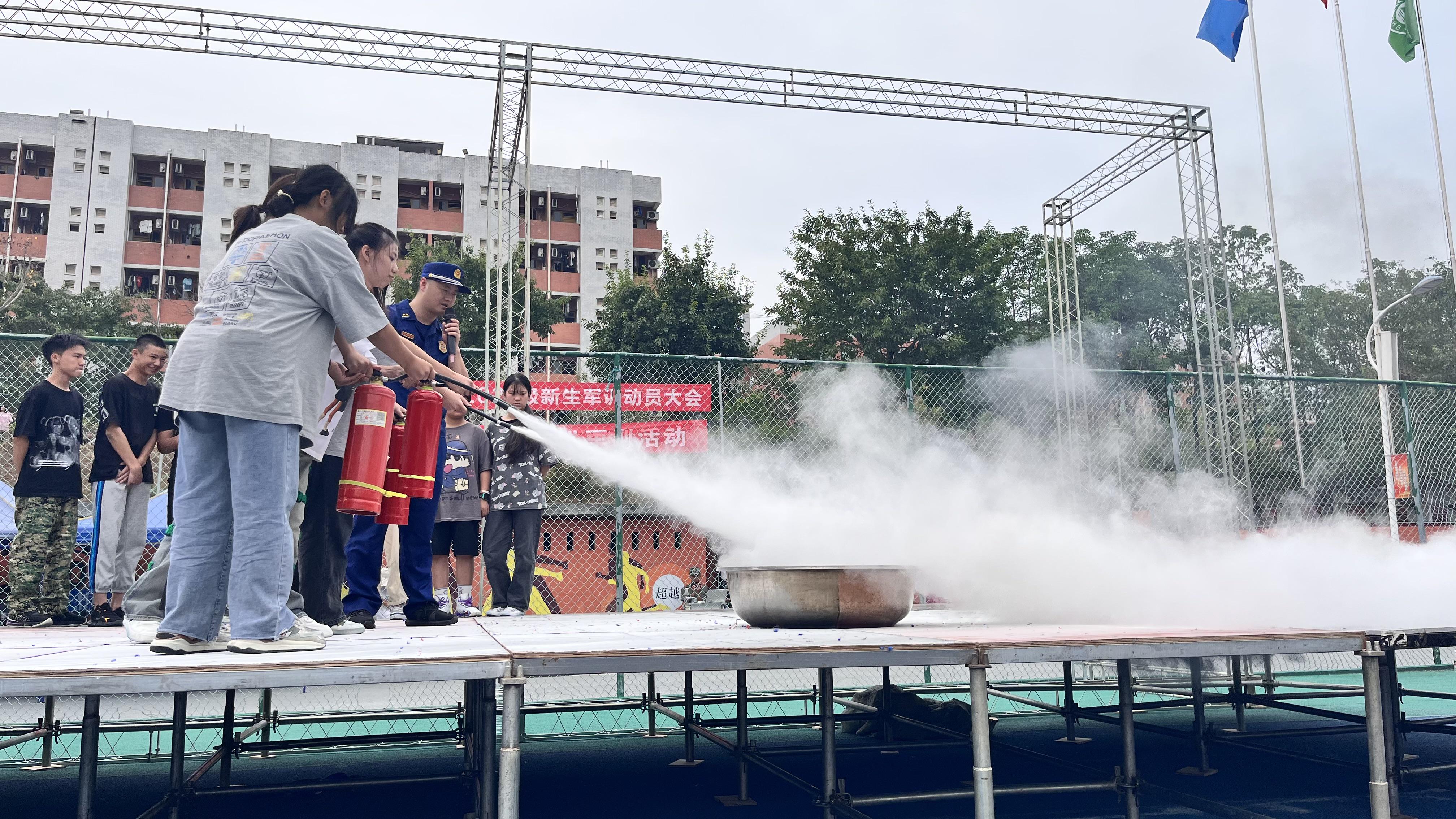 此次活动由周春城同志主讲,重点讲解了火灾的危害、火灾的预防知识,火灾发生时的应对办法,灭火器、消防栓等消防器材的辨识和使用方法;是灭火演练,现场安排了几名学生在周春城指导下正确规范使用灭火器灭火,向全体军训新生做灭火示范。