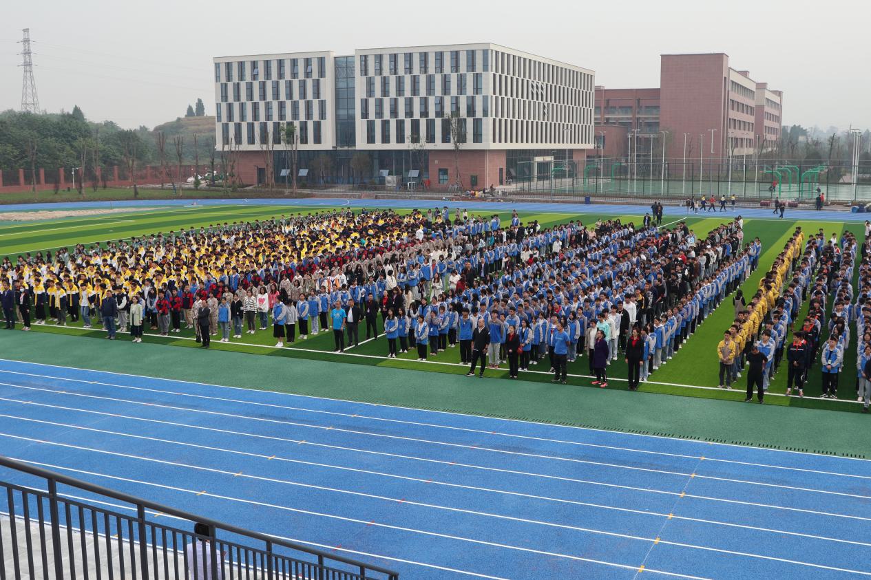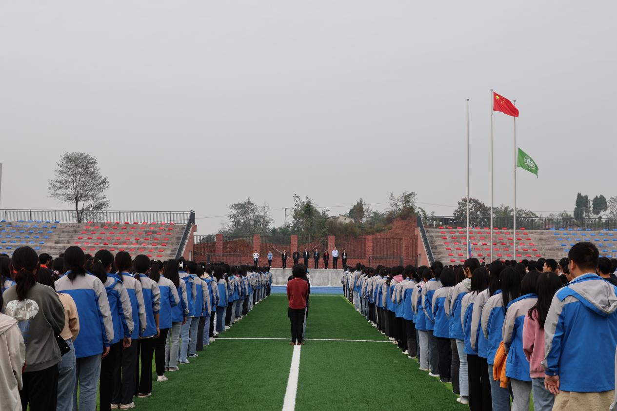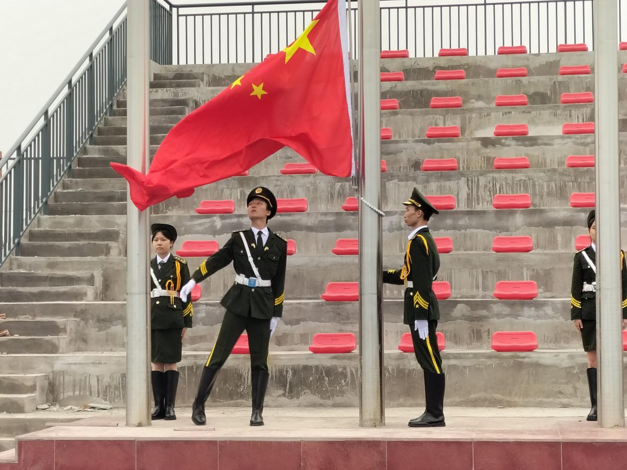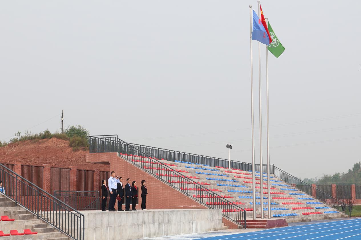 为全面落实党和国家的教育方针,加强师生思想道德建设,增强师生责任感与使命感,在党的二十大召开之际,2022年10月17日星期一上午10:00,重庆市大足职业教育中心高新区分校入驻师生在刚竣工的运动场上隆重举行了第一场升国旗仪式。