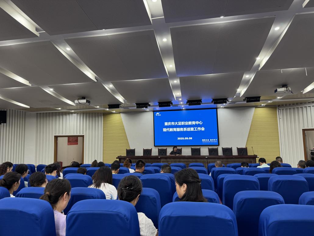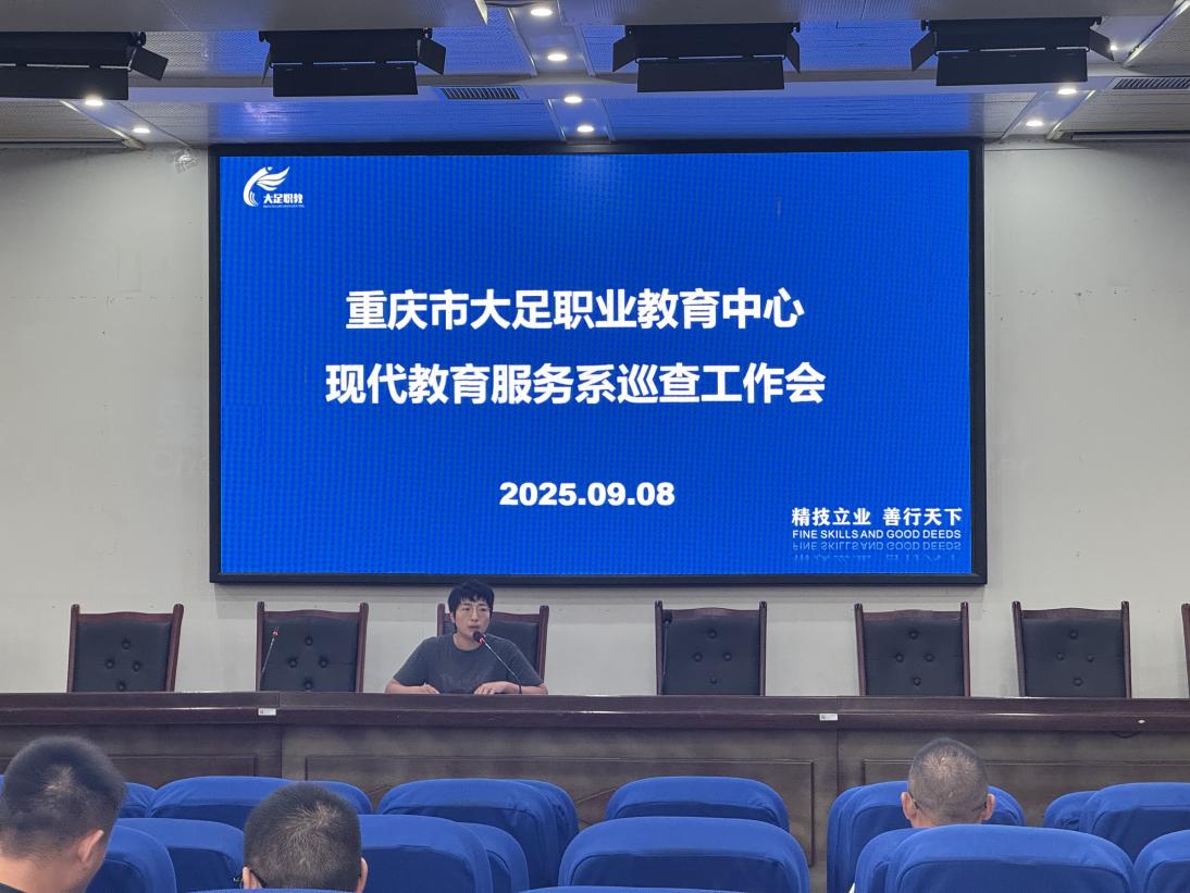 2025年9月8日,重庆市大足职业教育中心现代教育服务系为落实精细化管理要求,提升管理水平,保障教学工作与学生管理顺利开展,在第一学术报告厅召开了巡查工作会,宣布执行本系部制定的《2025 - 2026学年度上期巡查工作实施方案》。会议由系部主任李海燕主持并主讲,涉及参与巡查工作的老师参会。
