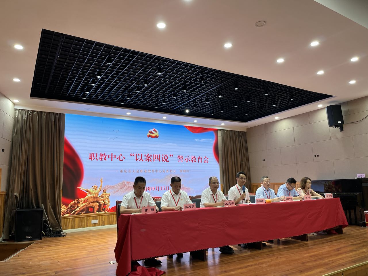 会上,全体党员首先观看了由大足区纪委录制的《欲望红绿灯》《滥权的代价》警示教育宣传片。随后,党委委员、纪委书记王良中,党委委员、副校长陈波,党委委员、副校长李再明,党委委员、副校长彭冬梅分别结合案件从“纪、德、法、责”四个方面作了专题发言。