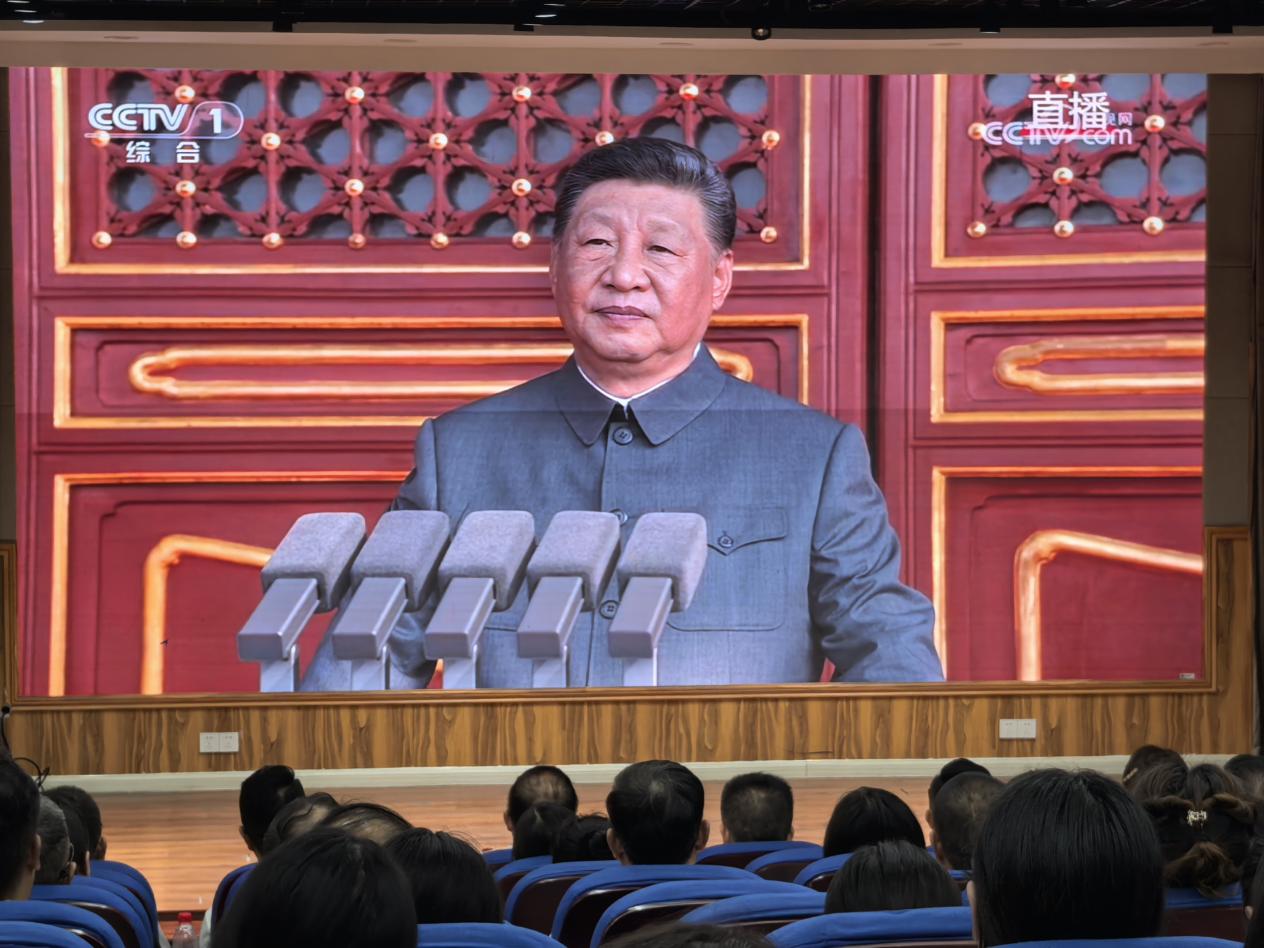 大足职教中心组织观看纪念抗战胜利80周年阅兵直播活动