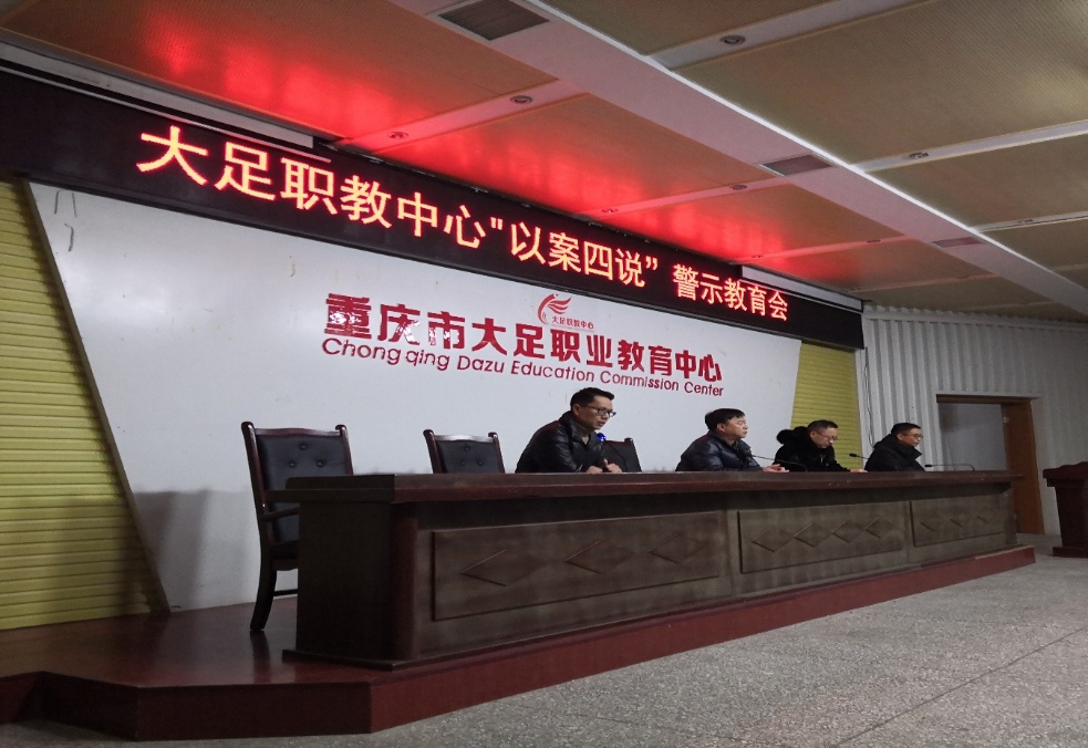 2020年12月16日,中共重庆市大足职业教育中心委员会组织全体教职工在学校第一学术报告厅召开“以案四说”警示教育会。会议由党委副书记、副校长覃兵主持。