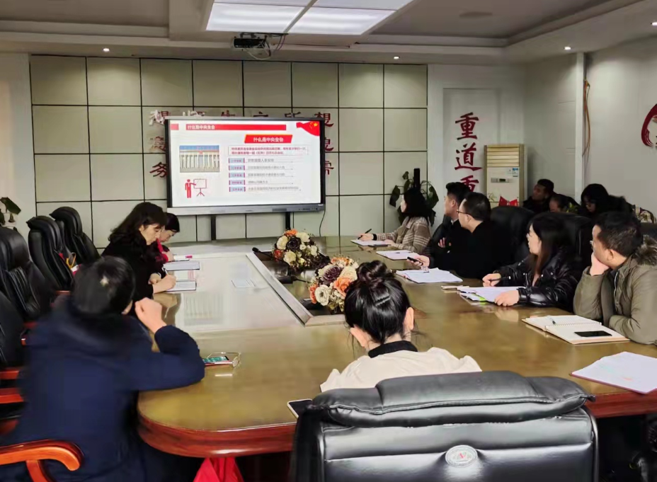 2021年11月19日下午,职教中心信息管理部党支部在励志楼二楼会议室召开学习党的十九届六中全会精神专题会,会议由信息管理部党支部书记易廷英同志主持,信息管理部党支部全体党员和入党积极分子参加了会议。
