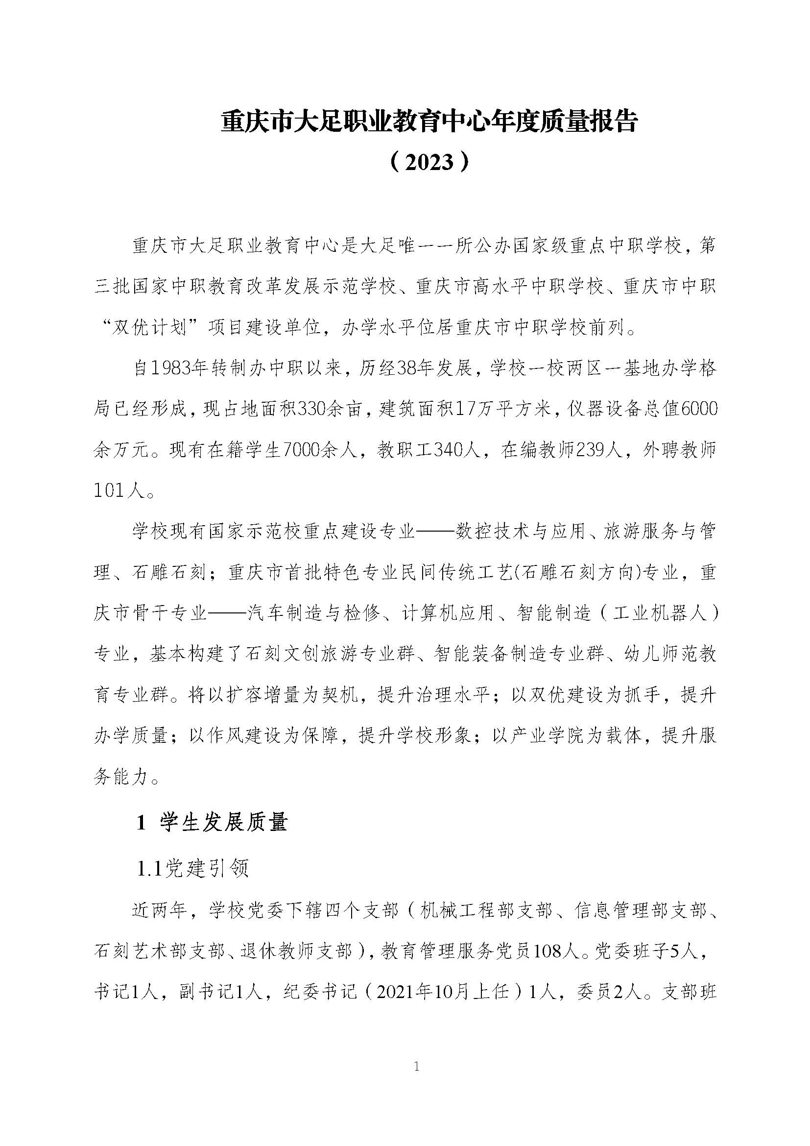 重庆市大足职业教育中心质量年度报告