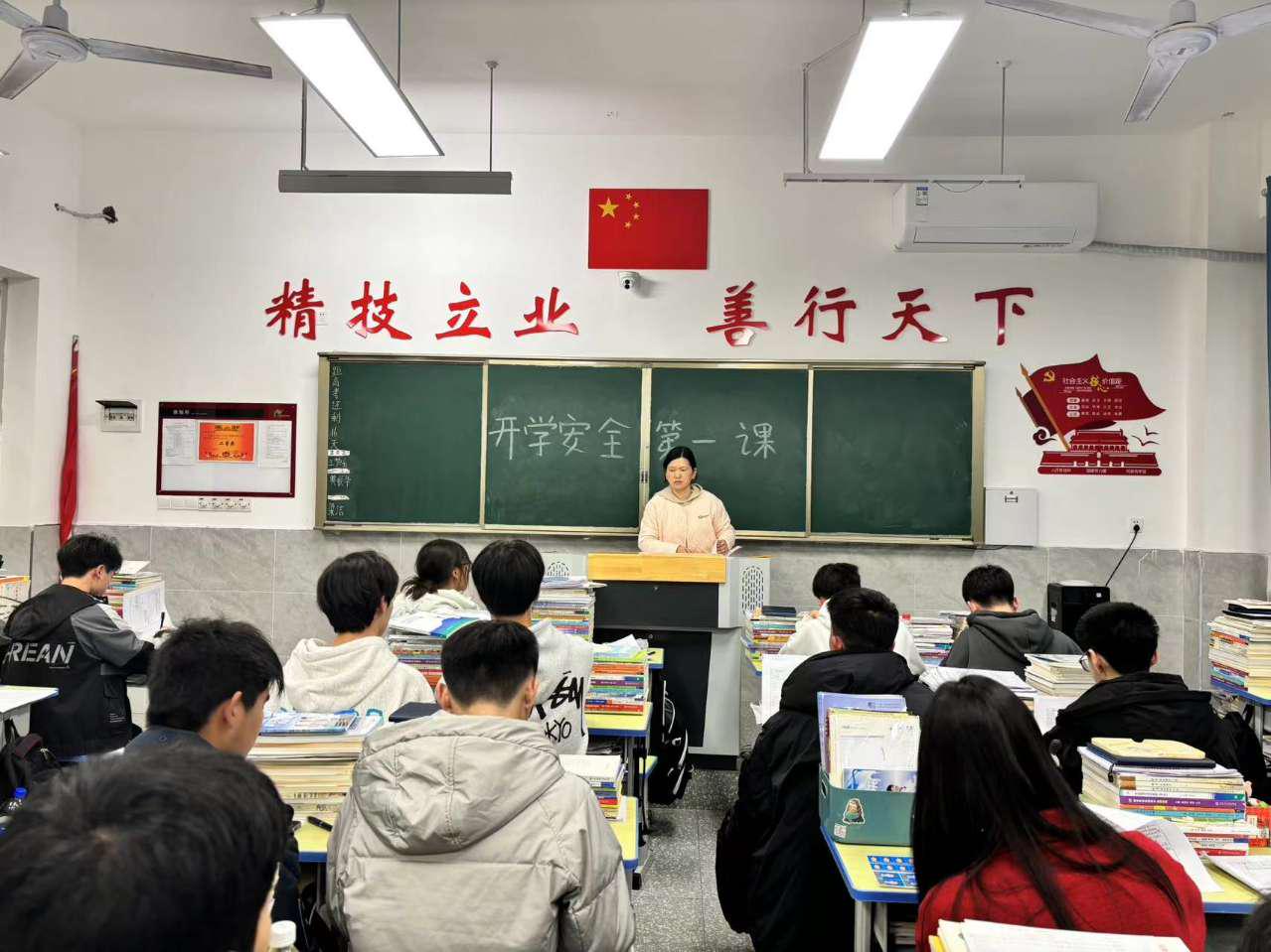 2月18日晚,各班主任利用晚自习时间在教室开展开学安全第一课活动,向同学们宣讲安全知识。