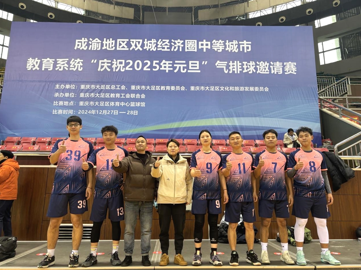 职教中心教职工气排球队参加成渝地区双域经济圈中等城市教育系统“庆祝2025元旦”气排球邀请赛荣获冠军