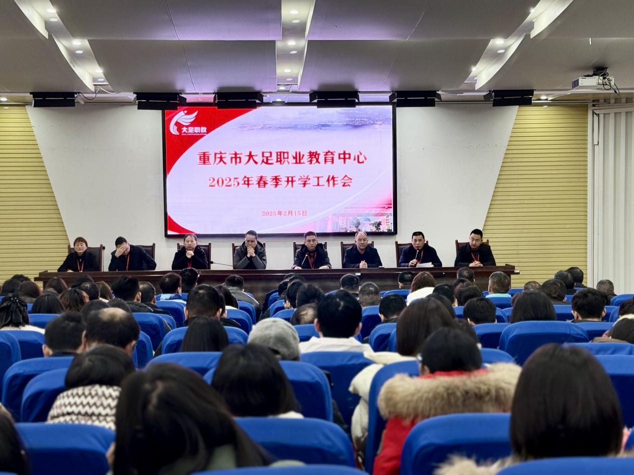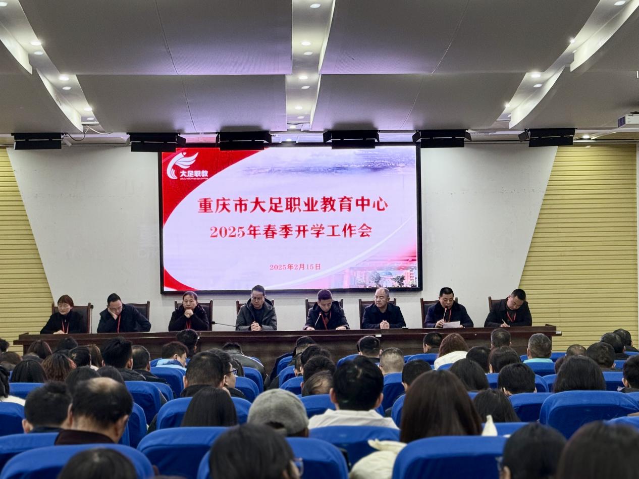 2025年2月15日上午9点整,重庆市大足职业教育中心召开了2025年春季开学工作会,全面部署新学期各项工作,为学校发展谋篇布局。会议由校长封吉泉同志主持,校级领导班子成员与全体教职工齐聚第一学术报告厅,共同开启新学期新征程。