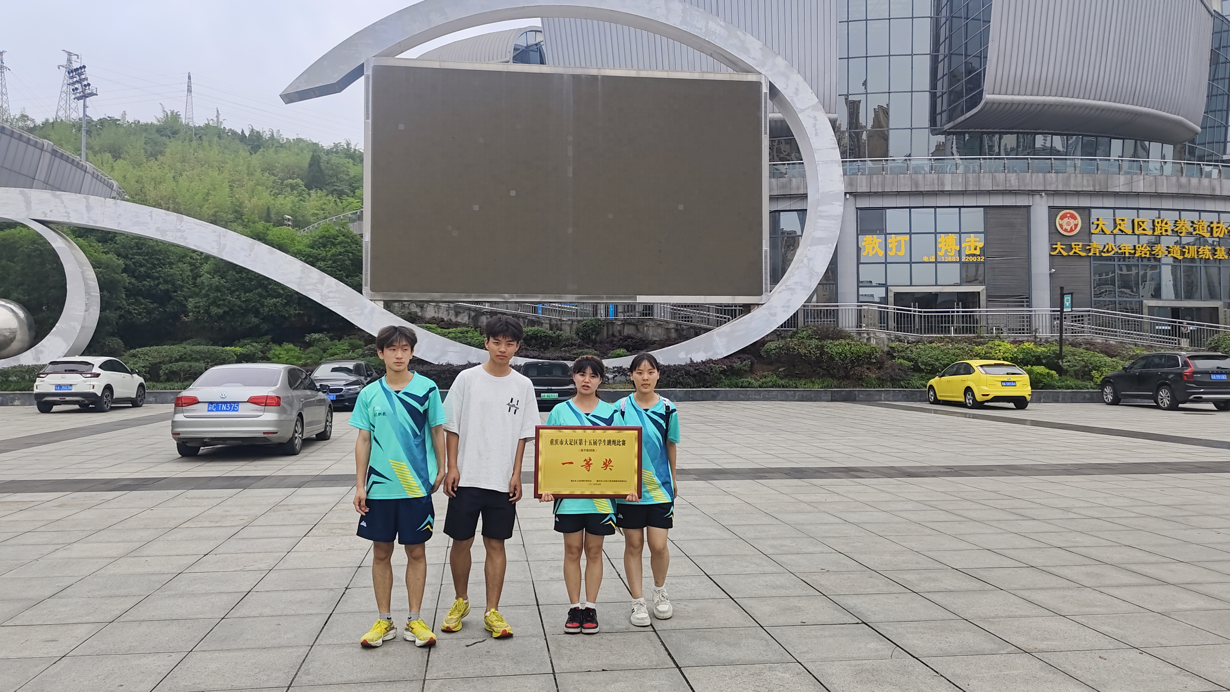 2025年5月22-25日,重庆市大足职业教育中心分别参加了大足区中小学生跳绳比赛和重庆市中等职业学校跳绳比赛。5月22-23日,大足区中小学生跳绳比赛由大足区教育委员会主办,别设置了小学组、初中组、高中组和高校组63个代表队参赛。在大足区中小学生跳绳比赛中,校长甘雨领队,教练周邦伟指导的跳绳队努力拼搏,展现大足职教学子风采,经过两天的激烈角逐获得高中组一等奖,周邦伟老师被评为优秀教练员。