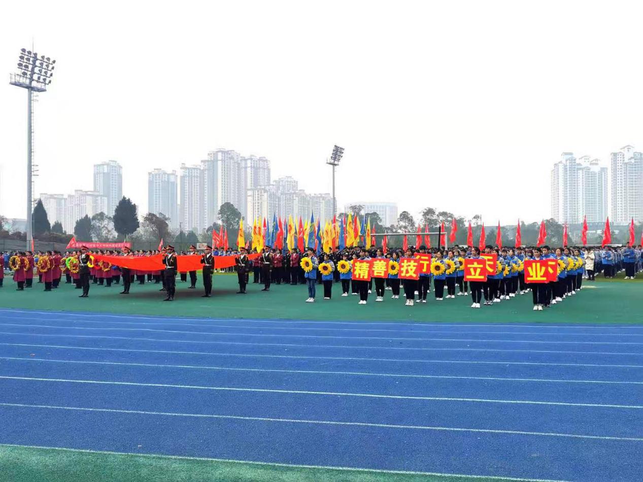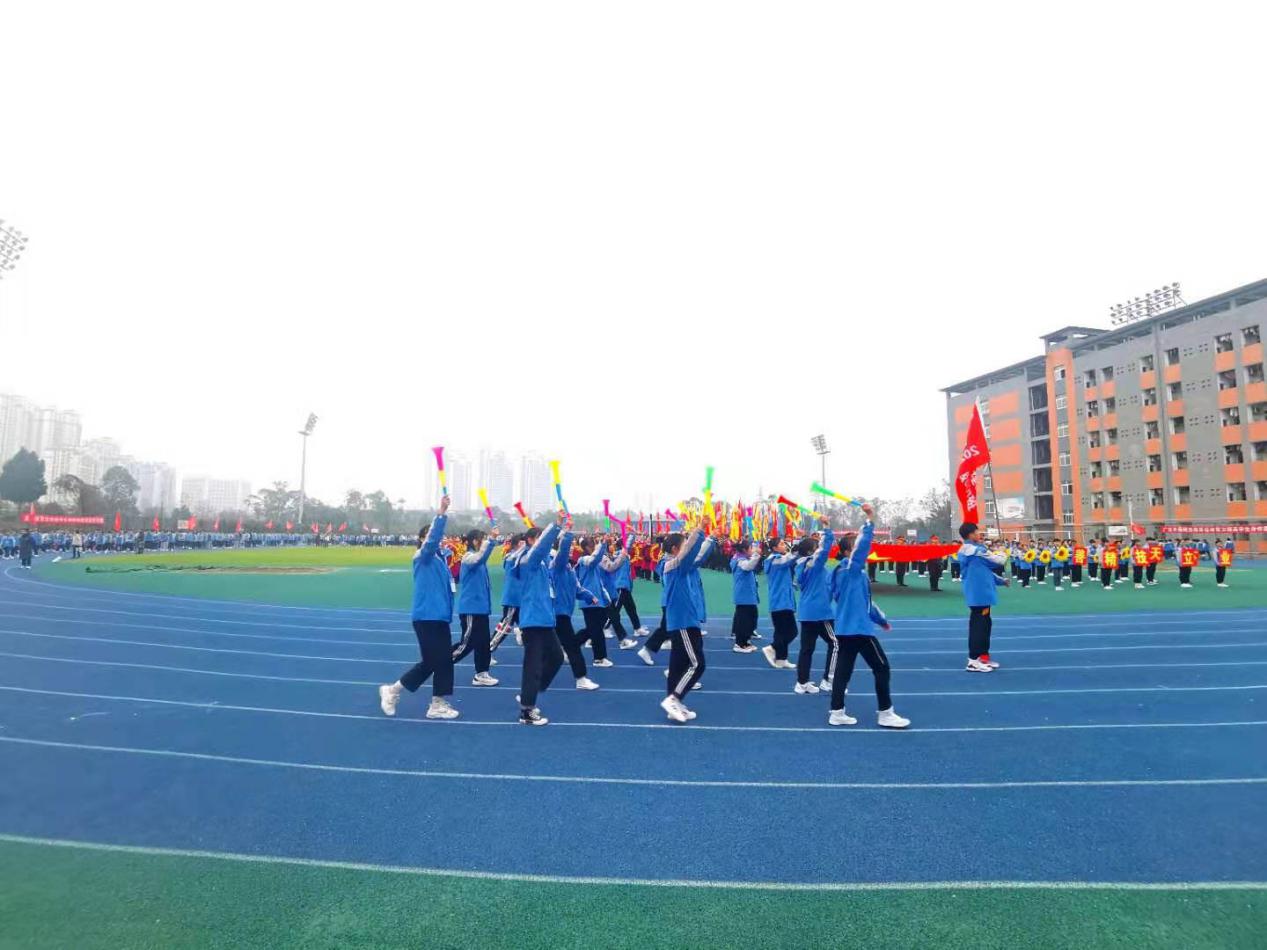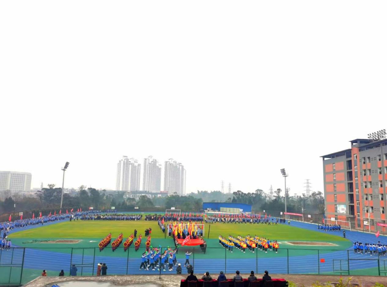 2020年12月22日上午8时20分,大足职教中心第十四届学生跳绳暨田径运动会开幕式于田径运动场隆重举行。