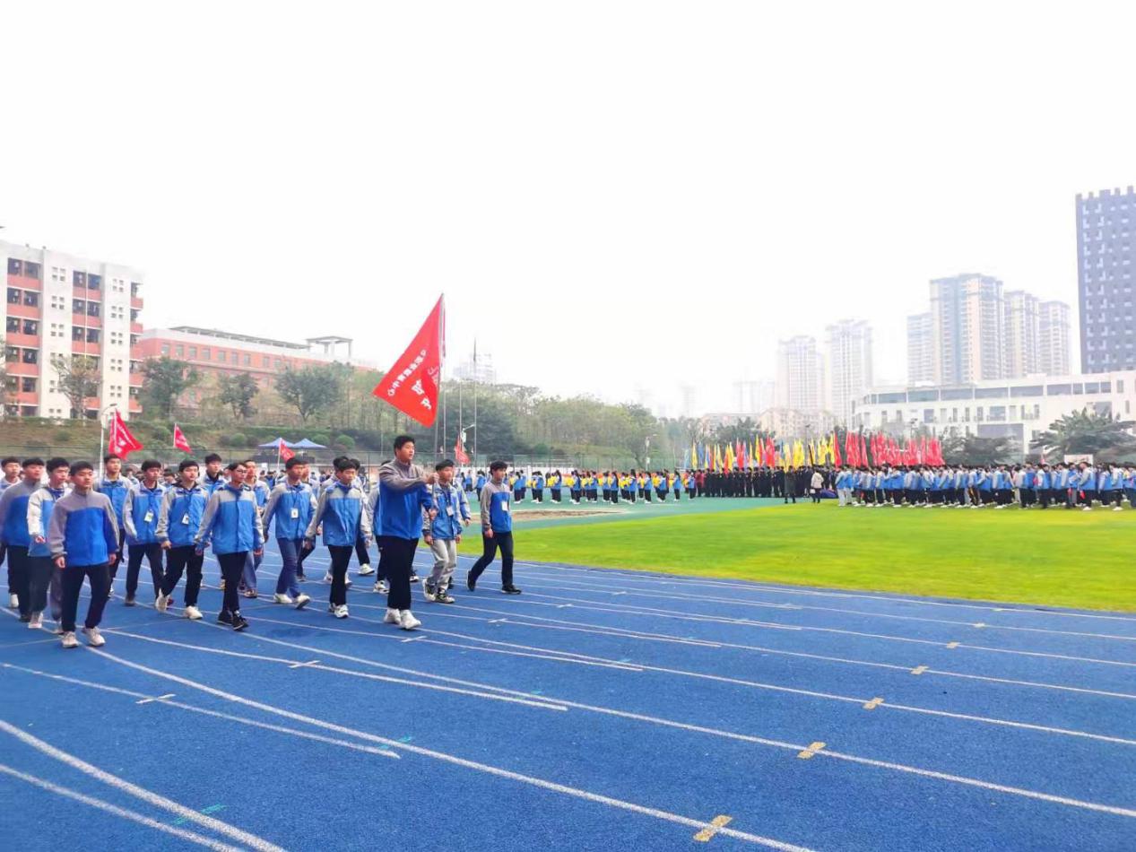 主持人席海峰同志宣布仪式开始后,伴随着激昂的运动员进行曲,各代表队陆续入场。在解说员的精彩解说下,他们精神饱满,英姿飒爽,步伐铿锵有力,口号响彻云霄,充分展现出职教中心莘莘学子积极进取的精神风貌和必胜的决心。