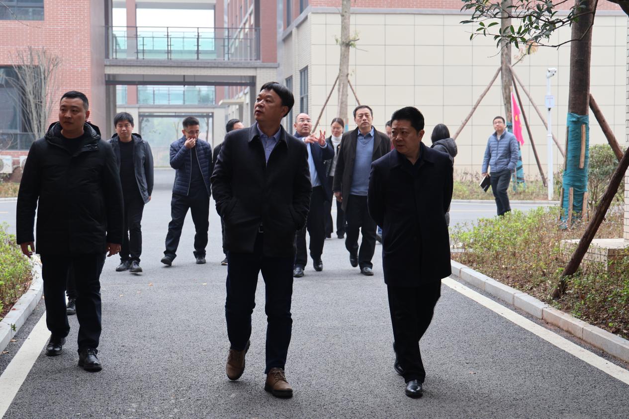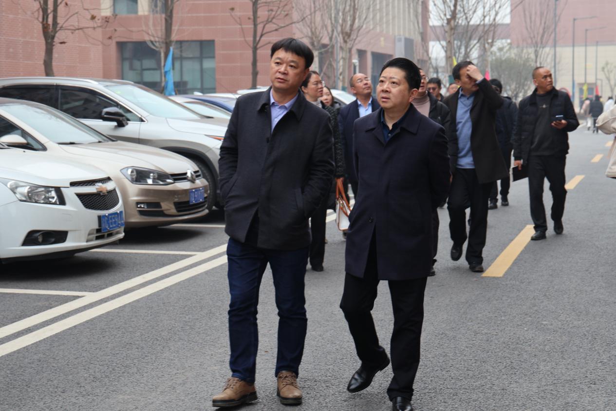 在职教中心校级班子成员的陪同下,艾远鹏校长一行参观了职教中心高新区分校新能源汽摩产业学院、电梯产业学院、室内篮球馆、室外足球场等区域,深入了解了睿智楼、启智楼、仁智楼等楼栋建设情况,实地探访了实训区域规划建设情况。