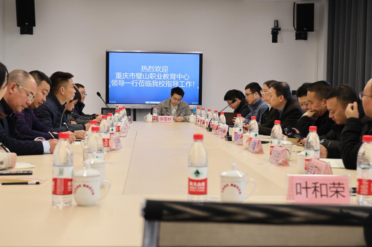 五湖四海皆兄弟,天下职教是一家。2023年2月8日,职教中心党委书记、校长蒋涛,党委副书记、副校长覃兵,副校长封吉泉、副校长宋海、纪委书记王良中热情接待、全程陪同重庆市璧山职业教育中心党委书记、校长艾远鹏、副校长方俊一行12人到职教中心高新区分校参观学校交流工作。