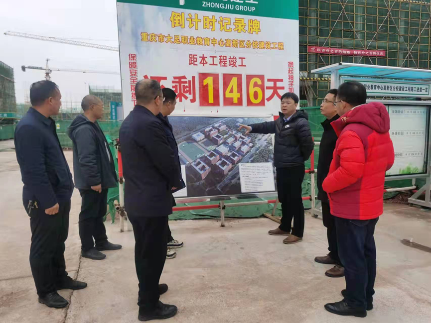 会后,学校领导班子于当日下午到三驱文创园大足石刻文创产业公共实训基地现场办工研究工作,到大足高新区分校实地跟进建校工程进度,分校建设工程主体已封顶,距竣工还剩146天。
