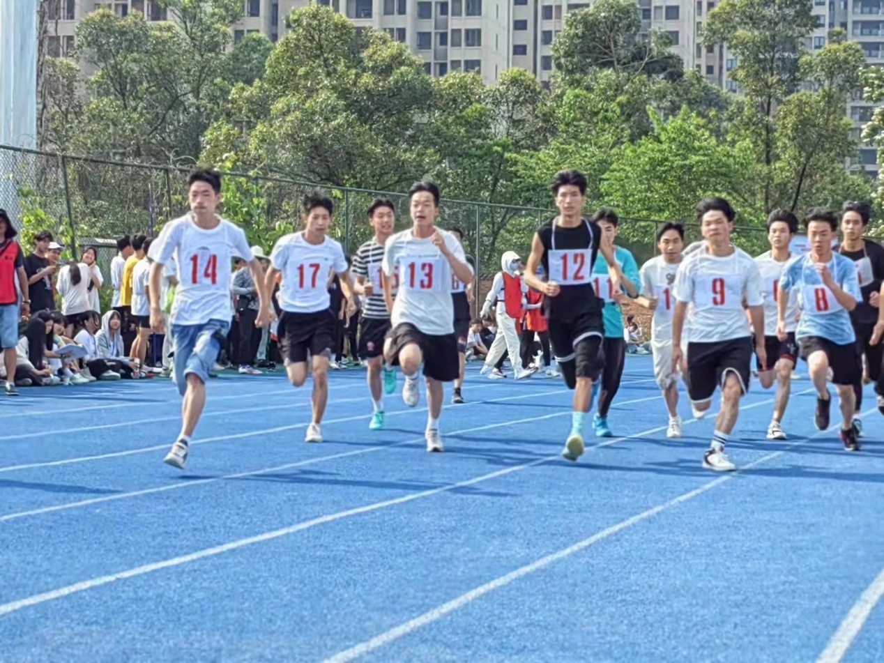 大赛进程中,踊现出了许许多多感人的事迹!2021级016班的何朋政同学比赛中不小心鞋掉了,硬是坚持光着脚跑完了余下的300多米赛程,并取得了可喜的成绩。他凭着过硬的实力,先后获得了200米、400米、4X100米的冠军,4X400米亚军,并且以上项目全部打破校记录!2021级014班的易航同学在男子400米跑中摔破了手指,血流不止仍然坚持跑完,最后荣获该项目第3名。