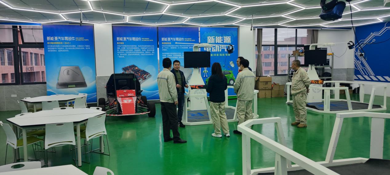 参观走访。刘琦琪主任带领贺书记一行参观现代智能制造系的新能源汽摩产业学院和电梯产业学院的实训基地。通过实地走访,校企双方互相亮了底,为接下来的校企互配师资设备工作提供参考。