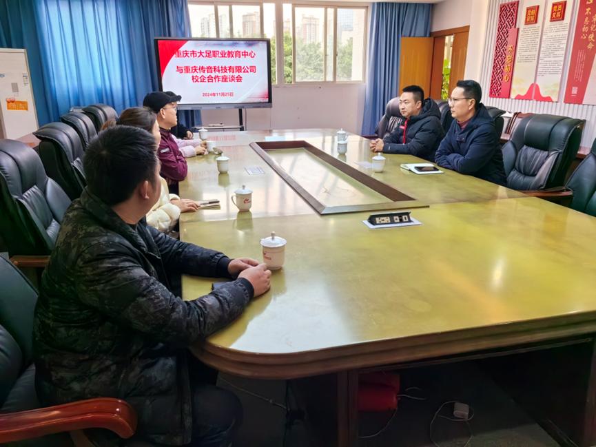 2024年 11 月25日,重庆传音科技有限公司人力资源部经理石岩率队一行 5人莅临大足职教中心,共商进一步深化校企合作相关事宜。